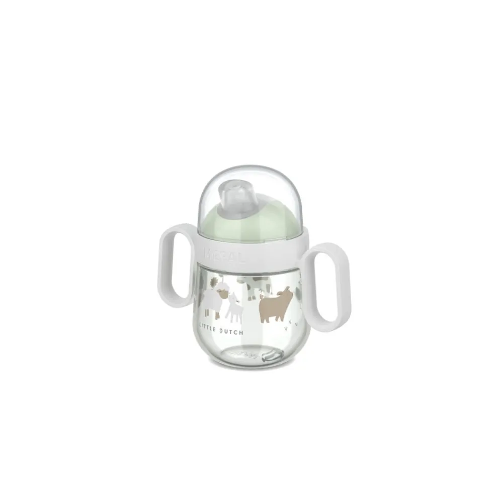 Mio Babykrus non drip har ekstra kort tud, der giver en sundere udvikling af munden og tænderne. Det har to drikkeåbninger, og de store håndtag gør kruset lettere at holde med små hænder. 100 % lækagesikker, væsken kommer kun ud, når barnet suger af tuden.