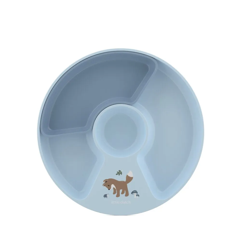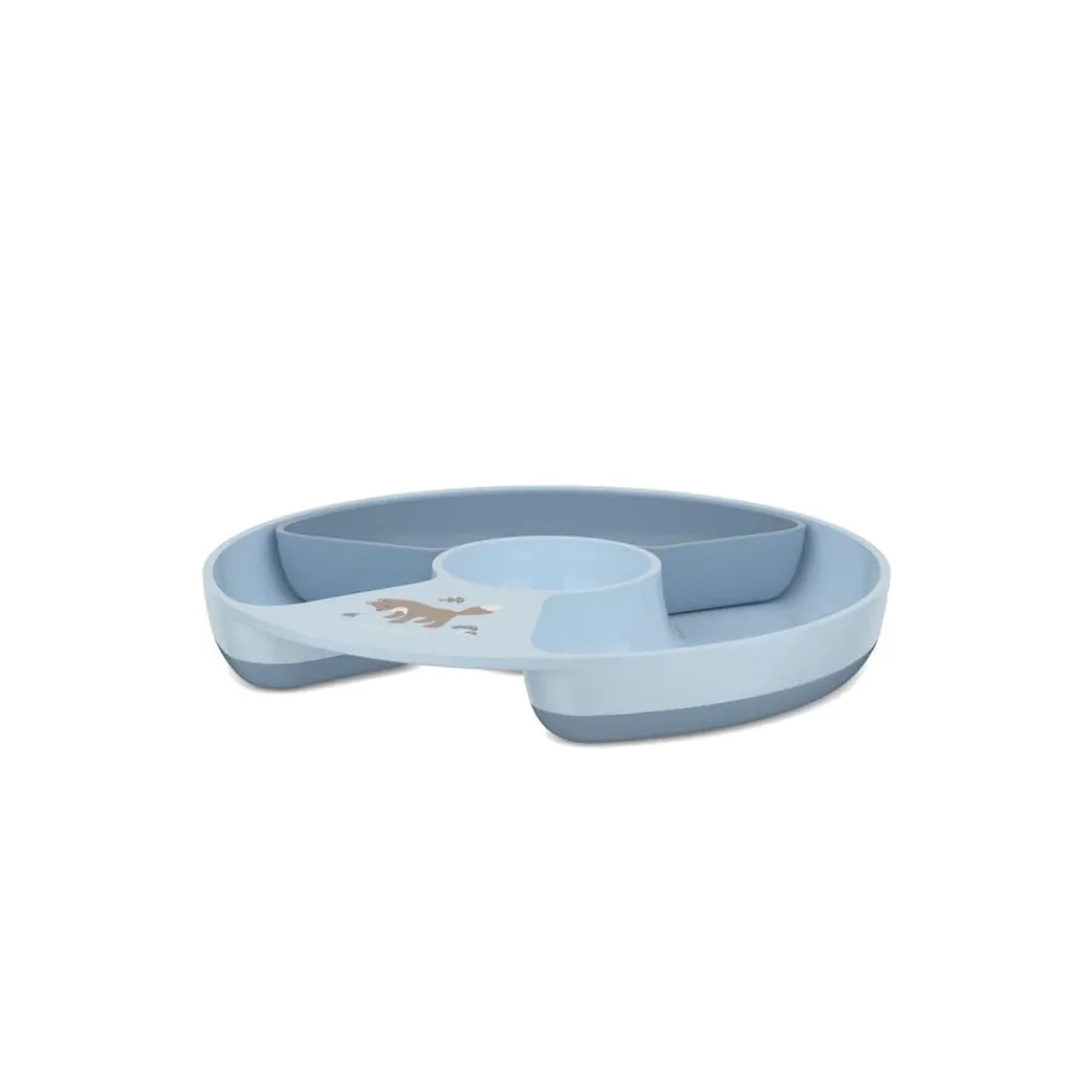 Let og robust børnetallerken med opdeling til barnet, der spiser selv. Tallerkenen er opdelt i 2 rum – et lille rundt i midten og et stort udenom. Desuden medfølger en flytbar og aftagelig beholder, så tallerkenen kan deles op i 2, 3 eller 4 sektioner i alt. Børnetallerkenen har høj kant, og de mange hjørner gør det lettere for barnet at skubbe maden op på skeen eller gaflen. Tallerkenen holder til daglig brug, hårdhændet behandling og går ikke i stykker, hvis den tabes på gulvet. Velegnet til mikroovn og opvaskemaskine. Diameter 20 cm. Højde 2,7 cm. PP- og TPE-plast.