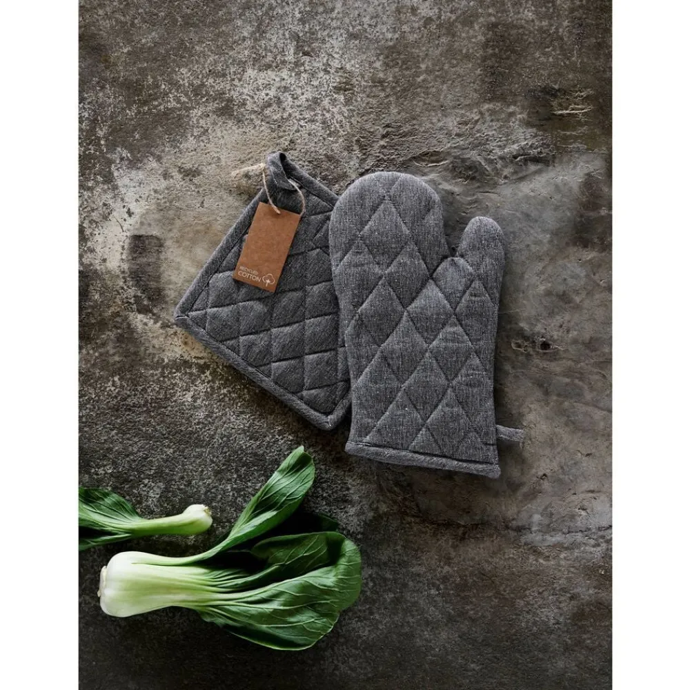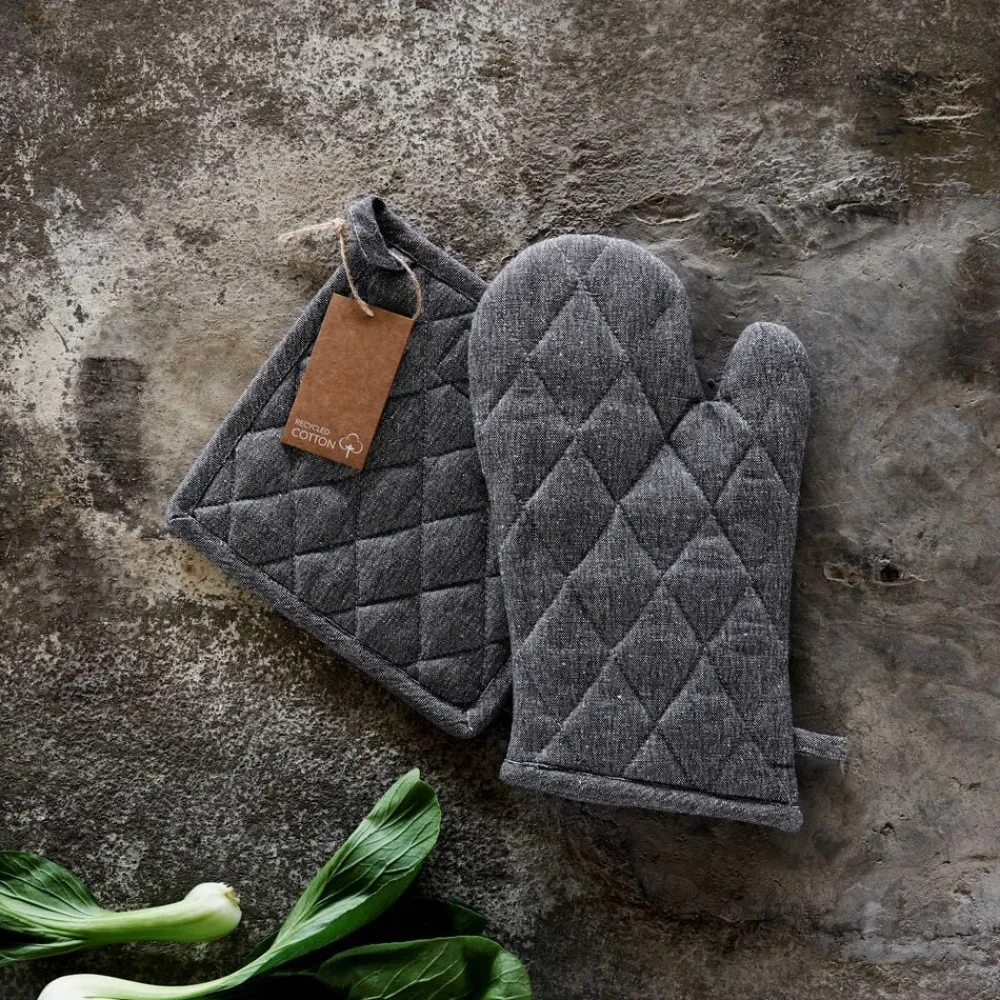 Køkkentekstiler i gode design i både klassiske og moderigtige farver. Tekstilerne vaskes ved 40 grader. Overskudsfarve kan forekomme, især ved mørke farver, derfor anbefales separat vask. Brug vaskemiddel uden optisk hvidt og blegemiddel. Krympning 5-10 %. Tekstilet kan “trækkes” glat eller stryges.