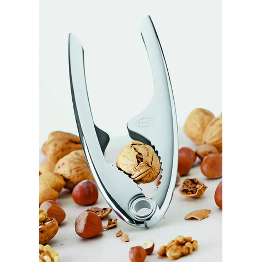 Nøddeknækkerens tænder forhindrer effektivt nødden i at glide ud. Skallen knækkes udelukkende af tænderne, så den åbnes uden at ødelægge selve nødden. Tåler opvaskemaskine.