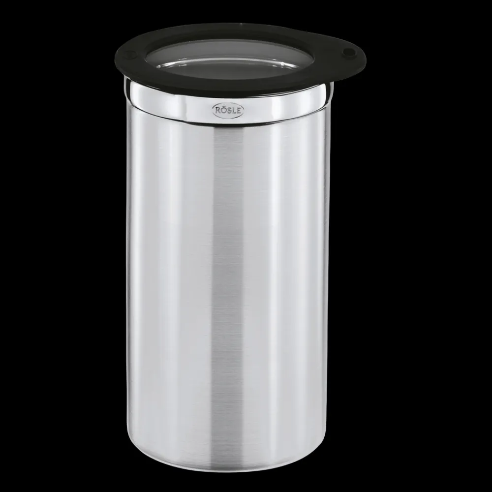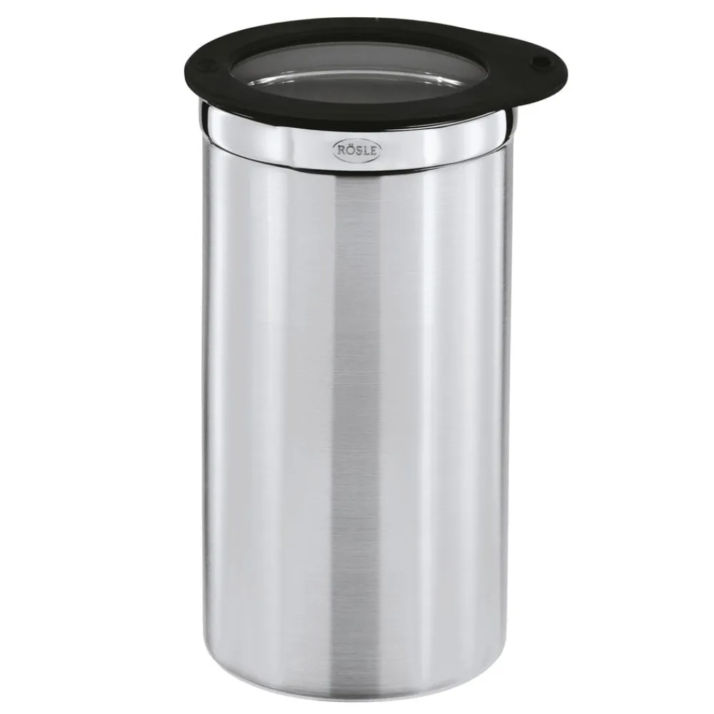 RÖSLE opbevaringsdåse af rustfrit stål er perfekt til opbevaring af mad, da smagen ikke påvirkes, samtidig med at den er nem at rengøre samt holdbar. Silikonekanten på glaslåget forsegler opbevaringsdåsen helt tæt, mens det flade låg gør det nemt at stable flere opbevaringsdåser.