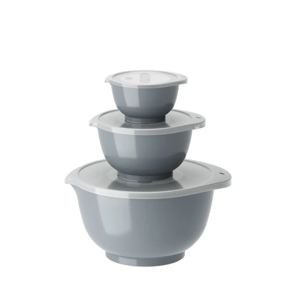 Margrethe røreskålesæt fra Rosti i 3 af de mest anvendte størrelser. Sættet indeholder 0,25 + 0,75 + 3 liter Margrethe-skåle med tilhørende låg.