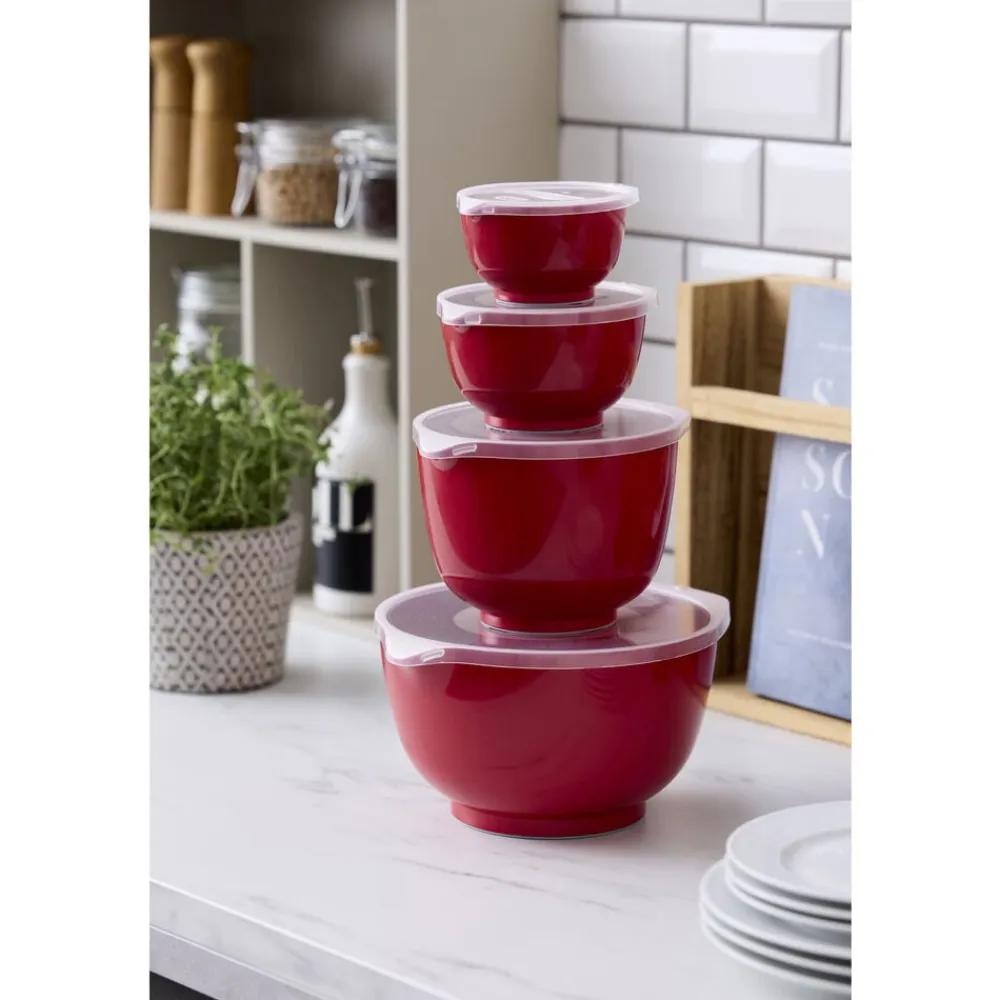 Margrethe røreskålesæt fra Rosti i 4 af de mest anvendte størrelser. Sættet indeholder 0,25 + 0,5 + 1,5 + 3 liter Margrethe-skåle med tilhørende låg.