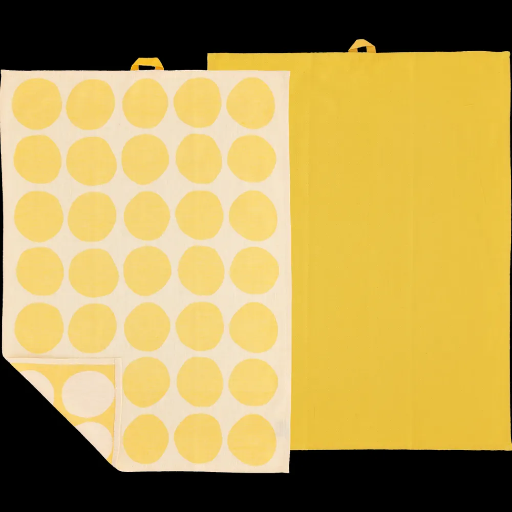 Enkelhed og charme kommer til udtryk i dette design med klassiske prikker. De store bobler giver et legende udtryk med de iøjnefaldende organiske former. Den livlige og dynamiske visuelle effekt vækker en følelse af glæde og liv i dit køkken. Bubbles-designet er sat sammen med et ensfarvet viskestykke i twillvævning.