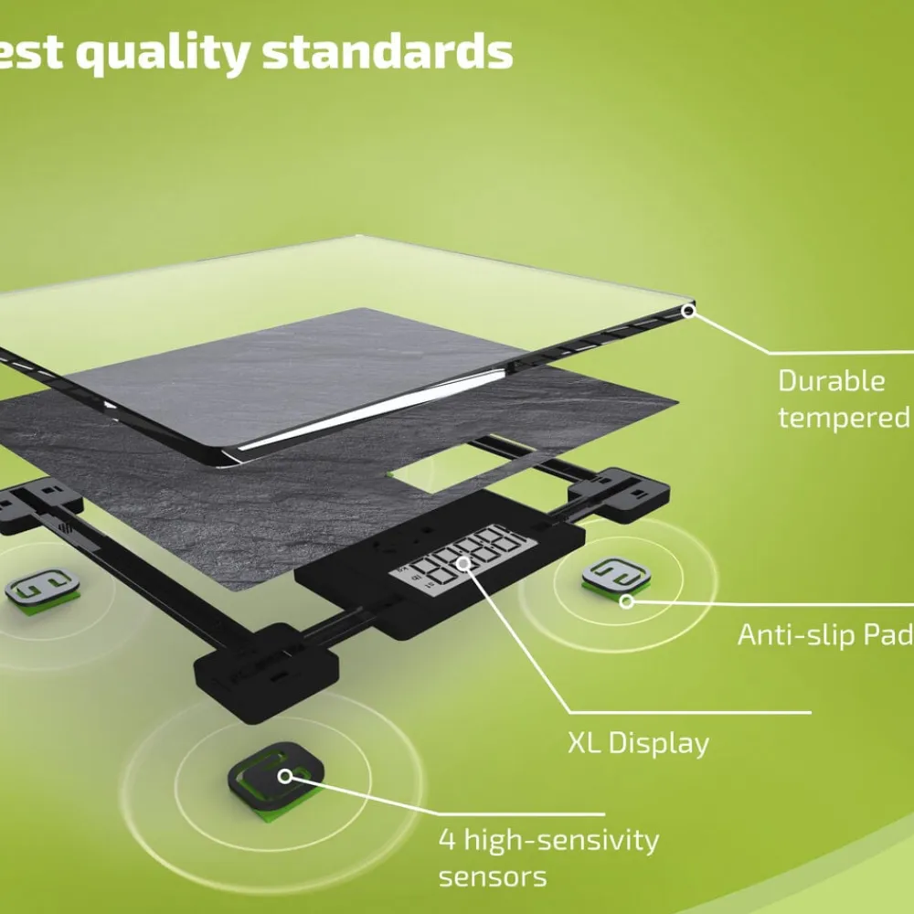 Style Sense Compact 300 er en stabil personvægt med en robust platform i 8 mm sikkerhedsglas. Vægten tænder automatisk, så snart du træder op, og slukker igen, når du er færdig. Vejer op til 180 kg med interval på 100 g, som giver et nøjagtigt resultat. Du kan frit vælge, om du vil aflæse vægten i kg, lb eller st, som nemt kan aflæses på den store LCD-skærm med tydelige tal.