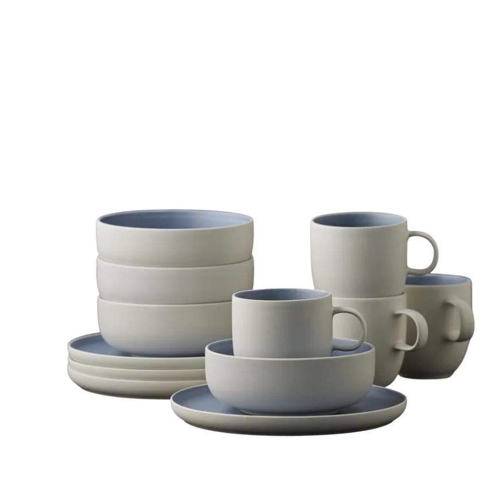 Grundfarven er mat hvid, og produkternes inderside er glaseret med den blå farve River, her i den smukke, matte variant. Blå er himlens og havets farve og en markant og iøjnefaldende trendfarve. Blå er yndlingsfarven hos mange, den er klassisk og kølig og passer perfekt ind i nordisk boligindretning. River går godt sammen med organiske materialer som lyst træ og kan kombineres med et meget bredt farvespekter, lige fra rødbrune terrakottafarver over lyse pasteller til andre stærke farver. River kan have mange forskellige udtryk alt efter, hvad den sættes sammen med.