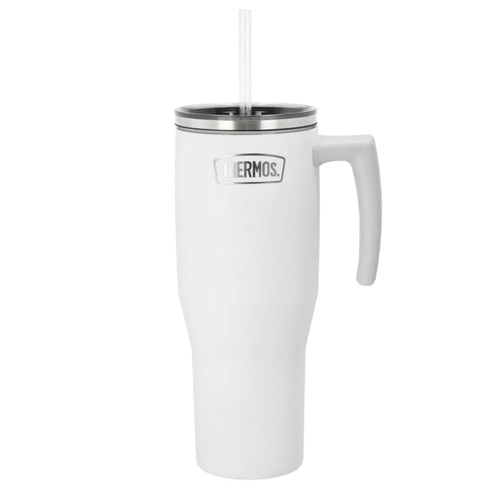 Termokrus med hank i rustfrit stål. Udstyret med et låg, som har sugerør. Holder drikkevarer kolde i op til 24 timer. Ideelt når man er på farten. Kruset passer til de fleste kopholdere i bilen, hvilket gør det perfekt til pendlere og lange køreture. Termokruset er let at rengøre.