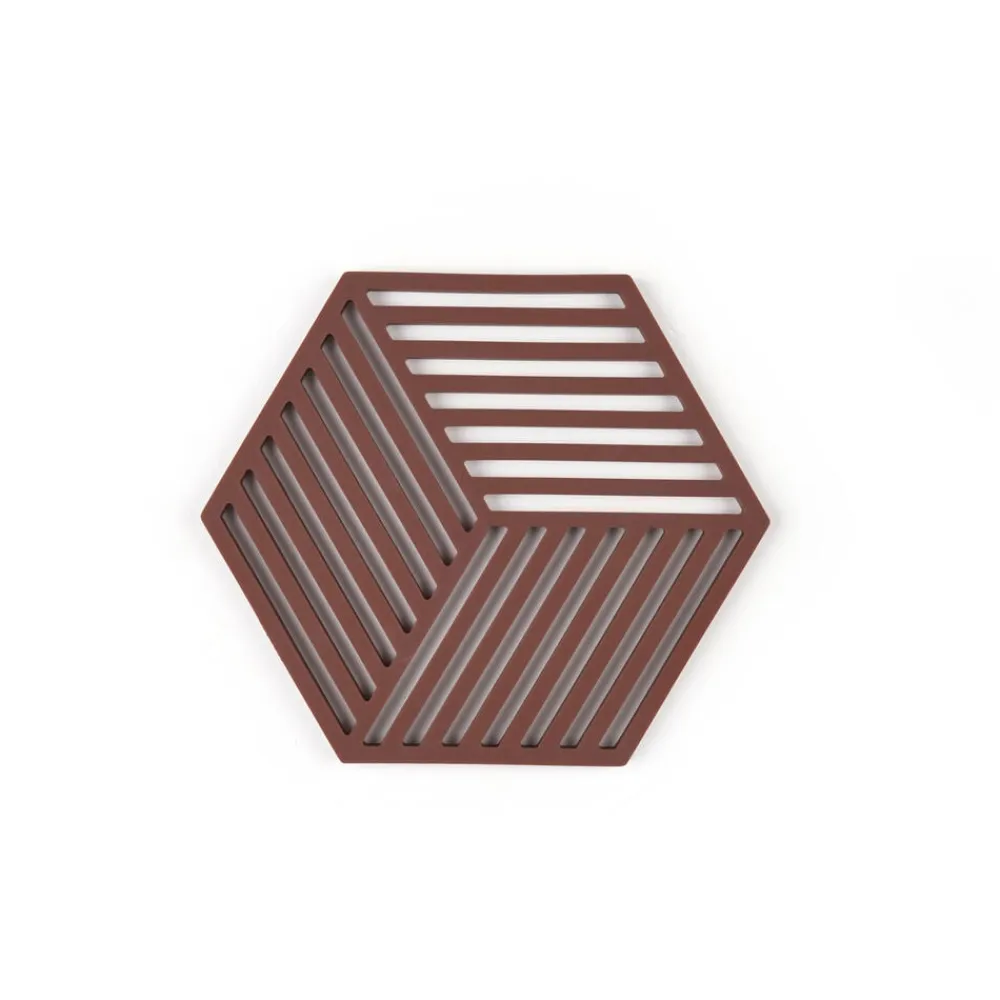 Hexagon bordskånerne i silikone er så grafisk dekorative, at de indbyder til at lægge en flok ud i hele bordets længde uden at stille noget på dem. De er varmebestandige op til 250 °C og kan vaskes i opvaskemaskine. 16 x 14 x 0,9 cm.