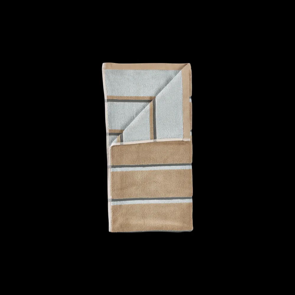 De retroinspirerede striber tilføjer et grafisk, urbant touch, og med en blød, kraftig kvalitet i garnfarvet 600 grams bomuld, føles håndklædet lige så lækkert, som det ser ud.