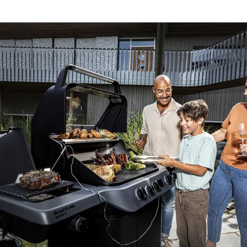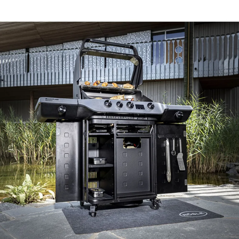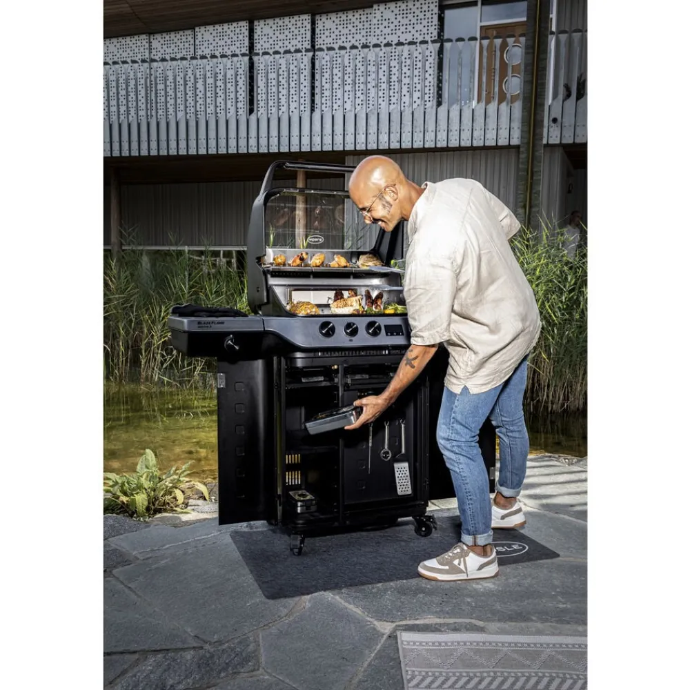 Blazeflame Master 3 er en kraftfuld gasgrill med tre imponerende gasbrændere (hver 4,0 kW), som nemt kan opnå høje temperaturer på grillristen i emaljeret støbejern. Grillen har et grillområde på 60 × 48 cm og tre justerbare opvarmningshylder. Opvarmningshylderne kan rengøres i opvaskemaskinen, og grillens smarte fedtopsamlingssystem med tre opsamlingsbakker sikrer nem og hygiejnisk rengøring. Opsamlingsbakkerne kan også rengøres i opvaskemaskinen. Brandkammeret er fremstillet i støbt aluminium, hvilket sikrer en optimal varmeeffektivitet og gør rengøringen ekstra nem. De tre brændere er samlet i én enhed, der nemt kan fjernes, når grillen skal rengøres. Der ydes 10 års garanti på brandkammeret.