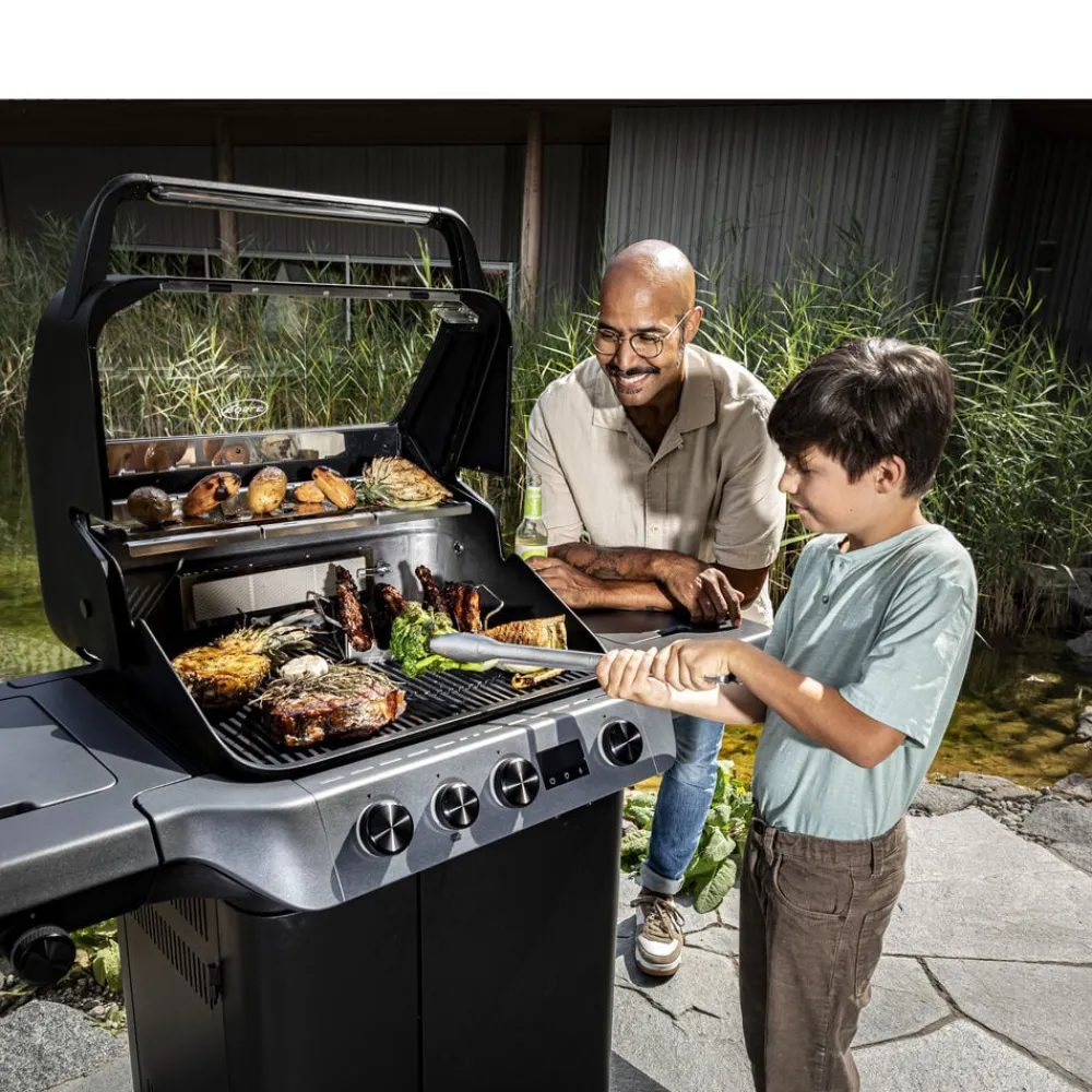Den intelligente displayløsning viser både grillens temperatur og kødets kernetemperatur. Du kan nemt overvåge tilberedningen via en Bluetooth-app eller på det integrerede display. Grillen leveres også med to temperatursensorer. Bruger 1 x AA-batteri (medfølger ikke).