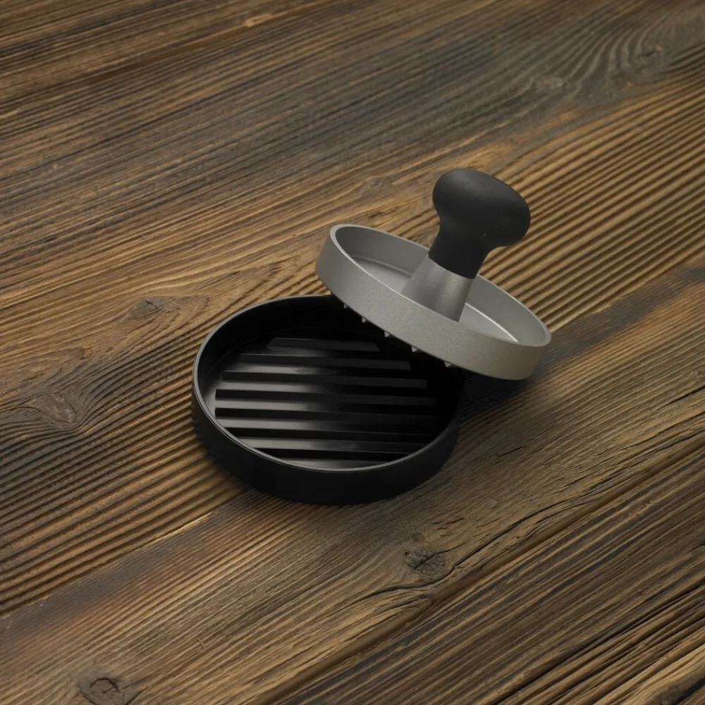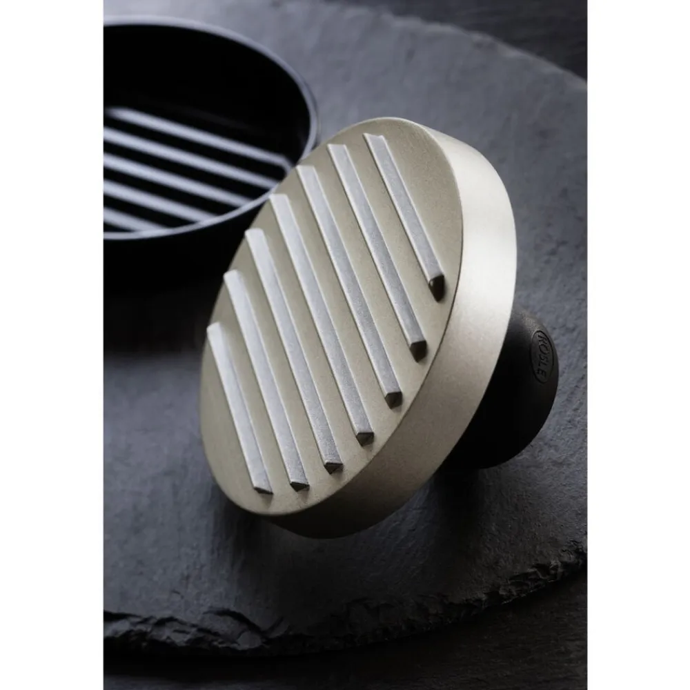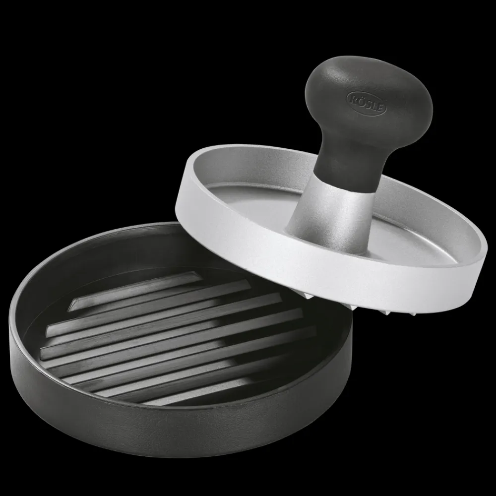 Til hurtig og let formning af burgerbøffer. Dia. 11,5 cm. Stampe med non-stick belægning. Ikke et grilltilbehør, så ikke egnet til brug på en grill. Velegnet til standard og XL burgerboller.