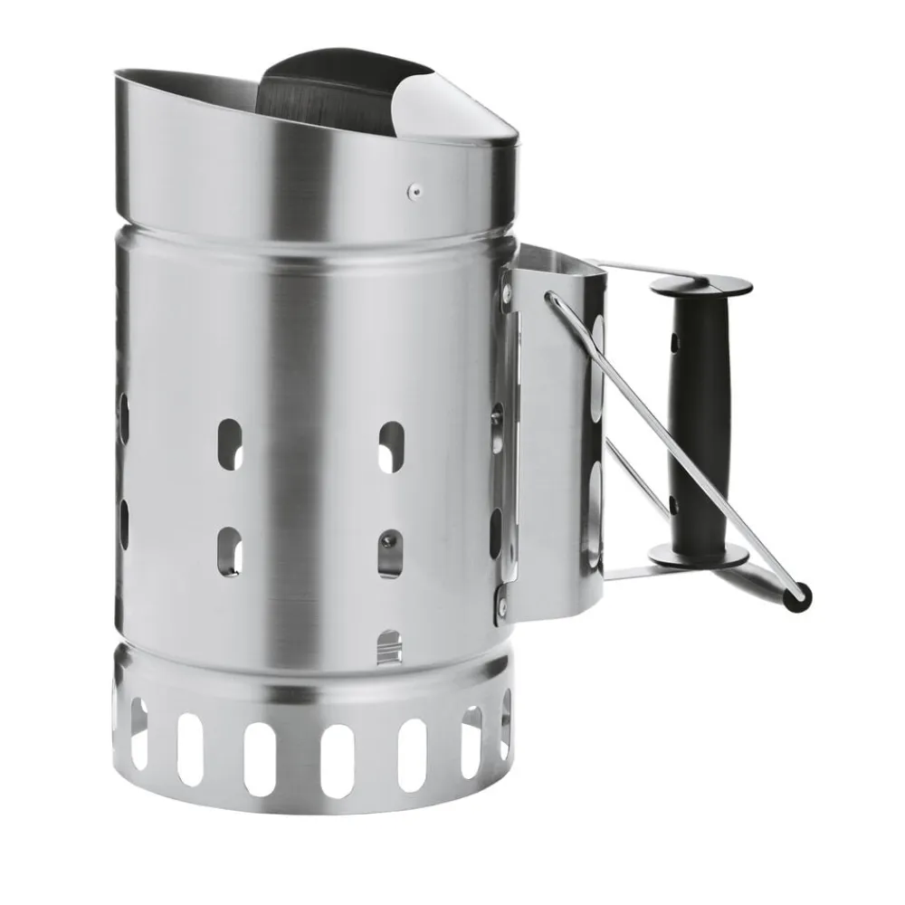 Praktisk og hurtig optænding af trækul og briketter. Gnistbeskyttelse for sikrere overførsel af de glødende kul til grillen. Stort håndtag med varmeskærm garanterer et godt og sikkert greb. Ekstra greb letter kontrolleret hældning af varme kul. Fyldningskapacitet ca. 2 kg briketter.
