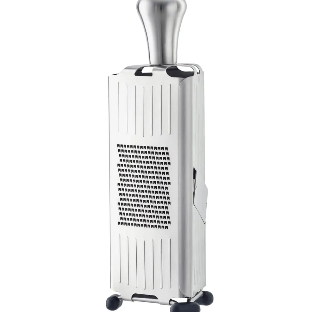 Kompakt multirivejern til at rive og snitte alt hvad, du kan tænke dig og som samtidig er let at gemme væk i skuffen. Multirivejernet kombinerer fint, groft samt snittejern i et køkkenredskab til mange formål, fx at rive parmesan, rive kartofler samt at snitte gulerødder m.m. Skæreoverfladen kan fjernes for rengøring. Silikone-fødderne sikrer, at du kan arbejde uden at rivejernet rykker sig på bordet. Inklusiv beskyttende etui.