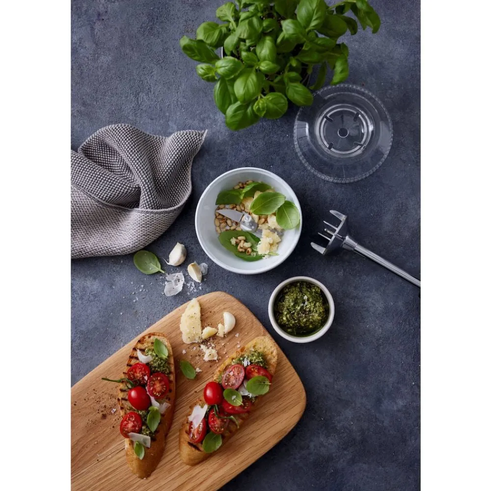 Med din bamix® Swissline Superbox og dens tilbehør kan du piske, purere, løsne, røre, blende, snitte, mikse, male, rive, skære og hakke.