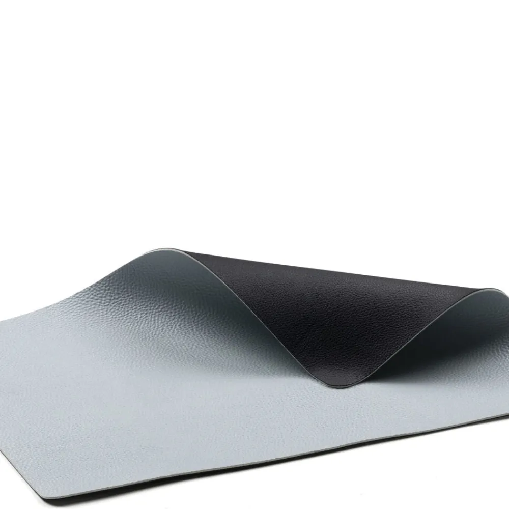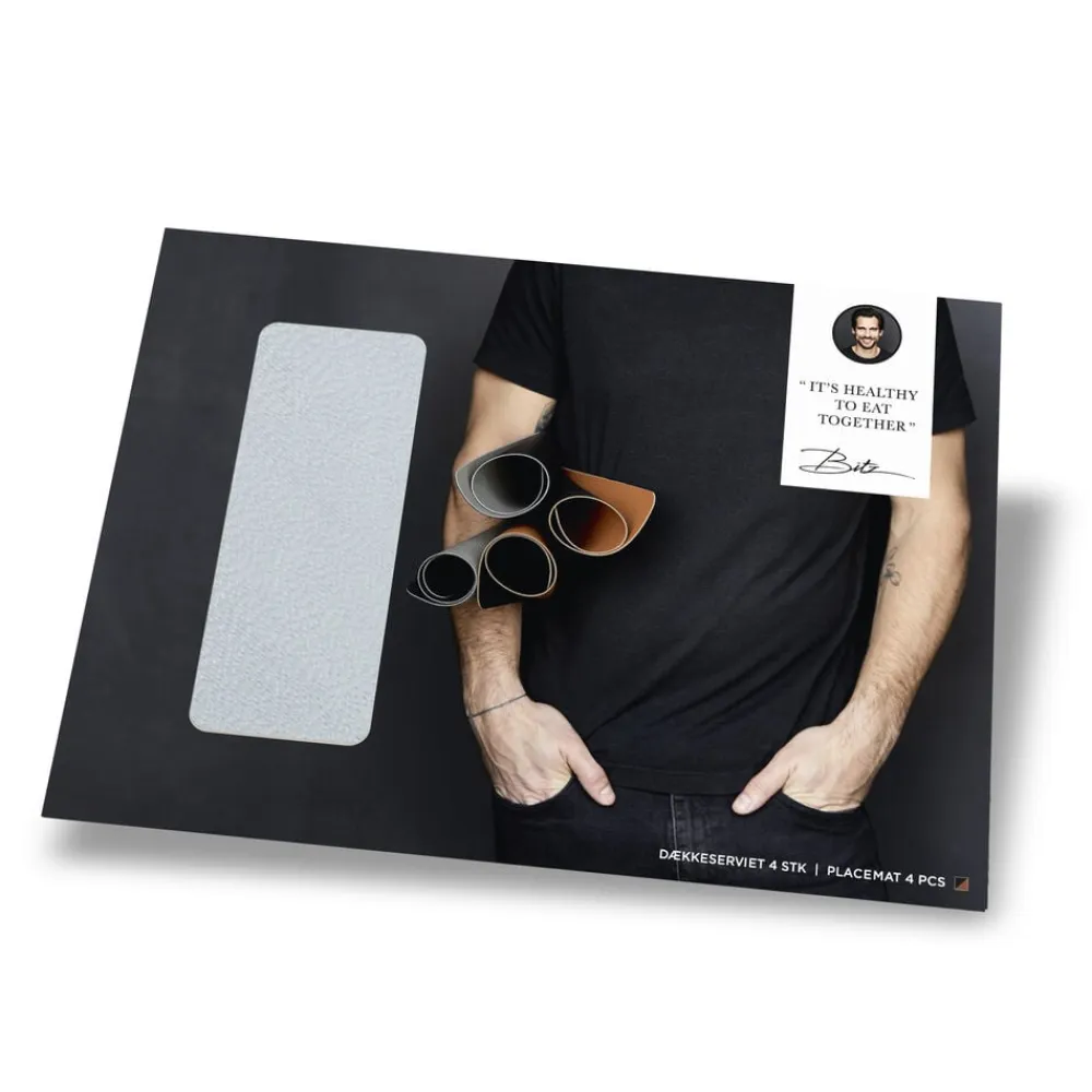 Vendbare dækkeservietter i praktisk vaskbart læderlook giver borddækningen et råt og moderne udtryk. Sort/Lyseblå.