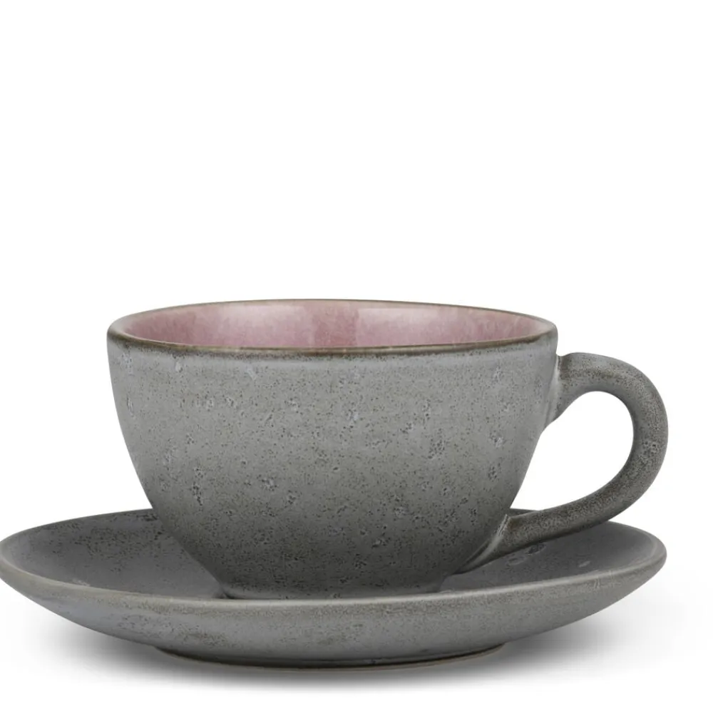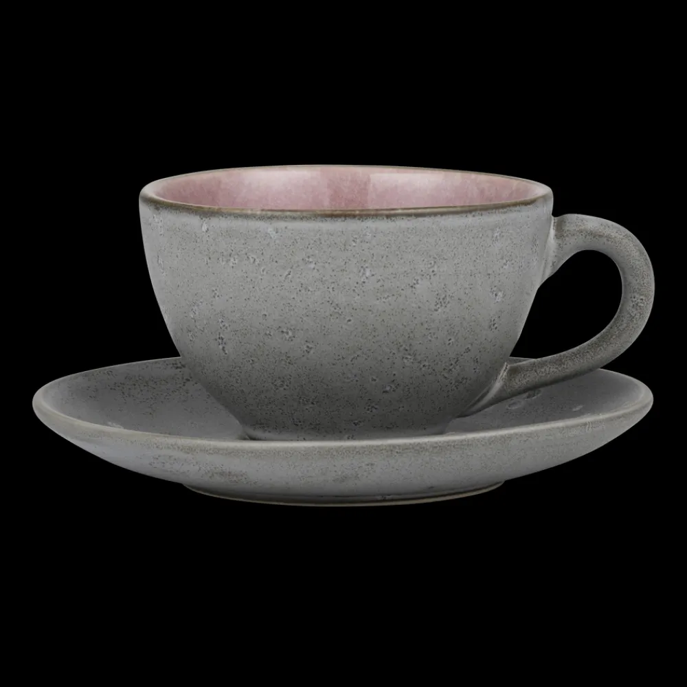 Nyd din cappuccino og dine andre kaffefavoritter i den flotte BITZ Kop med underkop. Fremstillet i mat, gråt stentøj med blank, lyserød glasur på koppens inderside. 24 cl, 6 cm høj. Velegnet til maskinopvask, mikroovn og ovn op til 220 gr.