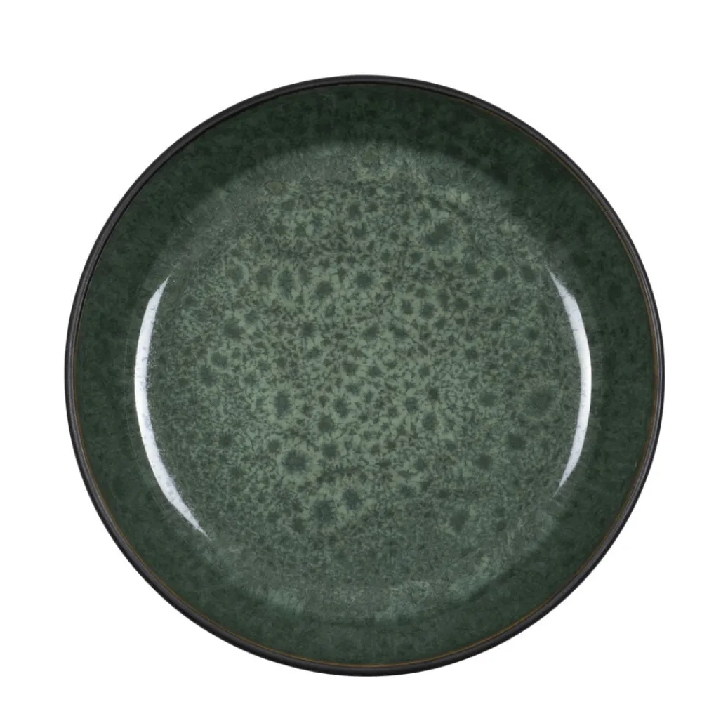 BITZ Suppeskål fremstillet i mat, sort stentøj med blank grøn glasur på indersiden. Skålen er 18 cm i diameter. BITZ robuste stentøjsskåle fås i flere størrelser og i mange fantastiske farvestillinger med flot, reaktiv glasur, der fremhæver stentøjets glød.