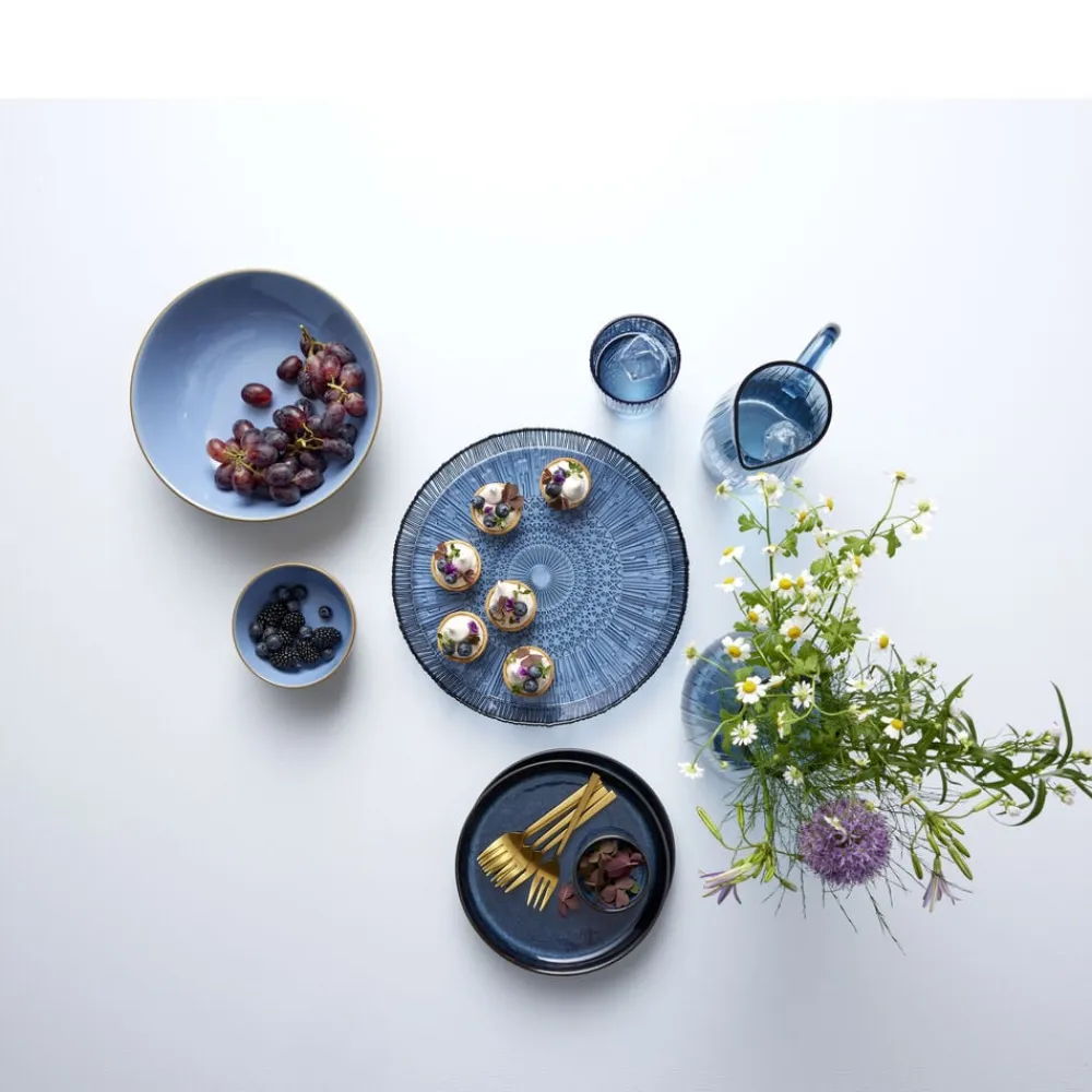 Nyd synet af den fine kande i riflet, gennemfarvet glas, når du hælder vand eller juice op. Kanden fås i farverne grøn, amber, pink, blå og i en helt klar udgave, og når du køber fra Kusintha-kollektionen, støtter du samtidig udsatte børn i verdens fattigste områder.