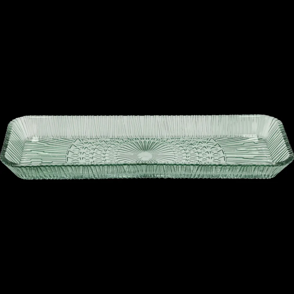 Med et smukt fad fremhæver du dine lækre serveringer. Anret fx en lækker salat på det rektangulære serveringsfad i gennemfarvet glas eller brug det til anretninger af saftigt kød, skåret frugt eller små søde sager. Velegnet til opvaskemaskine. 38 x 14 cm. Når du køber fra Kusintha-kollektionen, støtter du udsatte børn i verdens fattigste områder.