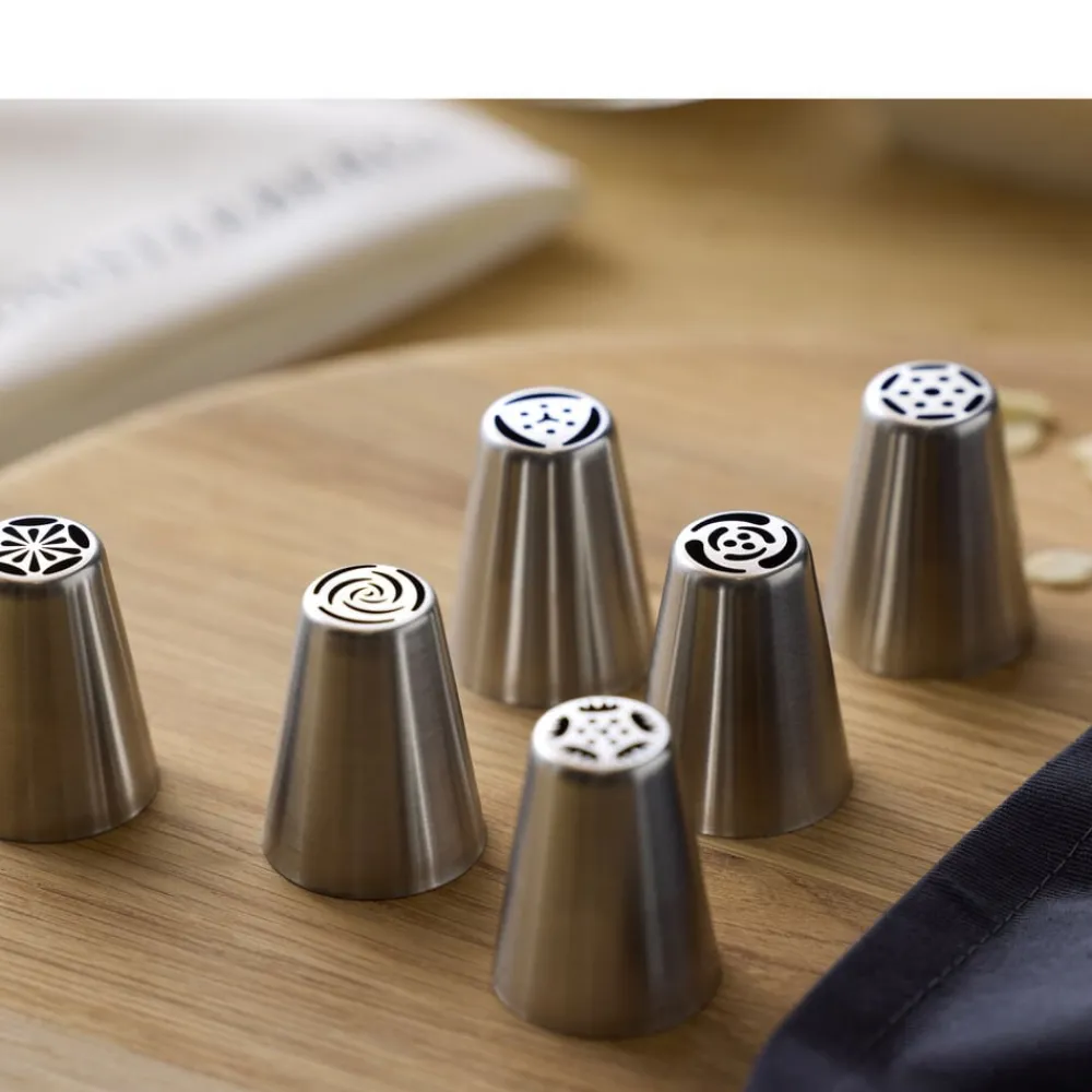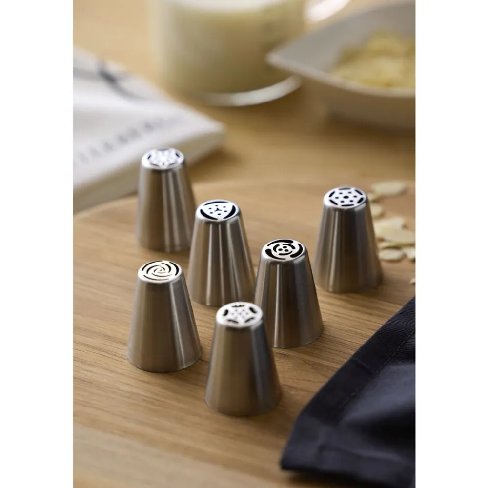 Tyllesæt med 6 tyller. Med et udvalg af forskellige tyller kan du nemt dekorere kager, cupcakes og andre søde sager. Tyllesættet giver god mulighed for at eksperimentere med forskellige teksturer og mønstre, når du skal udforske dekorationsteknikker i det søde køkken. Velegnet til opvaskemaskine. Vaskes i opvaskemaskine før første brug.