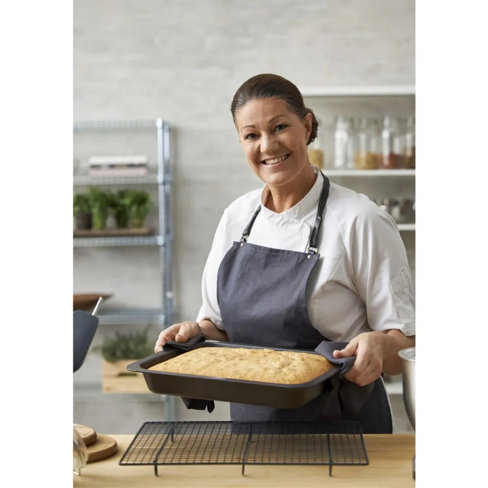 Stor bradepande i stål med non-stick-belægning, som slipper nemt og er let at rengøre. Bradepanden rummer 4,2 liter og anvendes til lækre, klassiske bradepandekager, som du vil forkæle familie og venner med. Du kan også bage et stort brød eller lasagne i bradepanden.