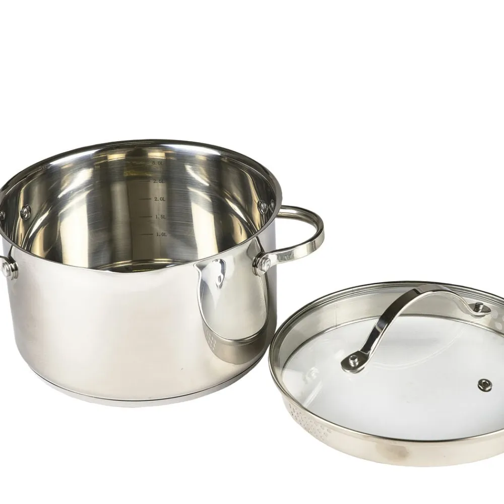 Glaslåg med si-funktion på to sider af låget, hvilket sikrer, at vand kan hældes fra gryden, uden at indhold kommer med.