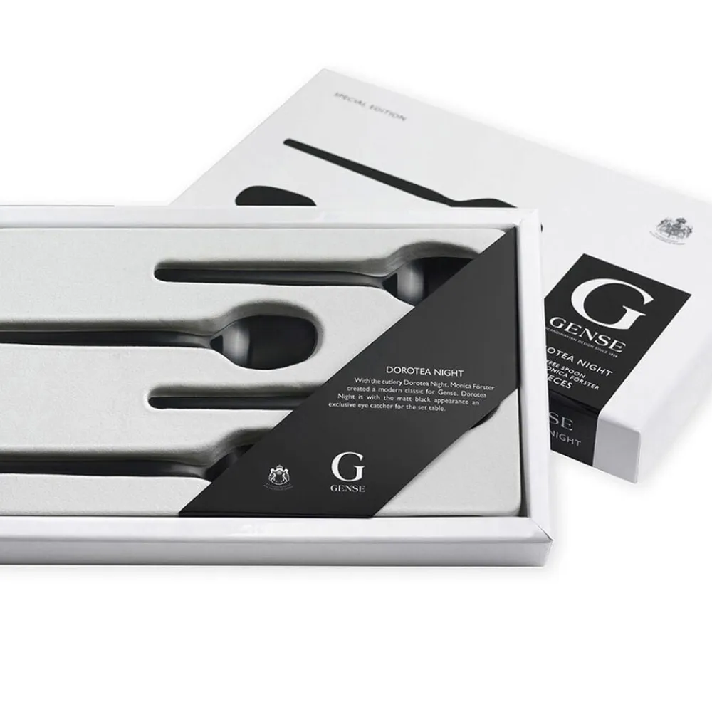 Dorotea Night er et bestik, der giver mange muligheder for borddækninger med sin sorte farve, der symboliserer eksklusivitet og elegance: Fra opdækning udelukkende i dramatisk sort eller som et samspil med blankt eller mat bestik, porcelæn, glas og tekstil.
