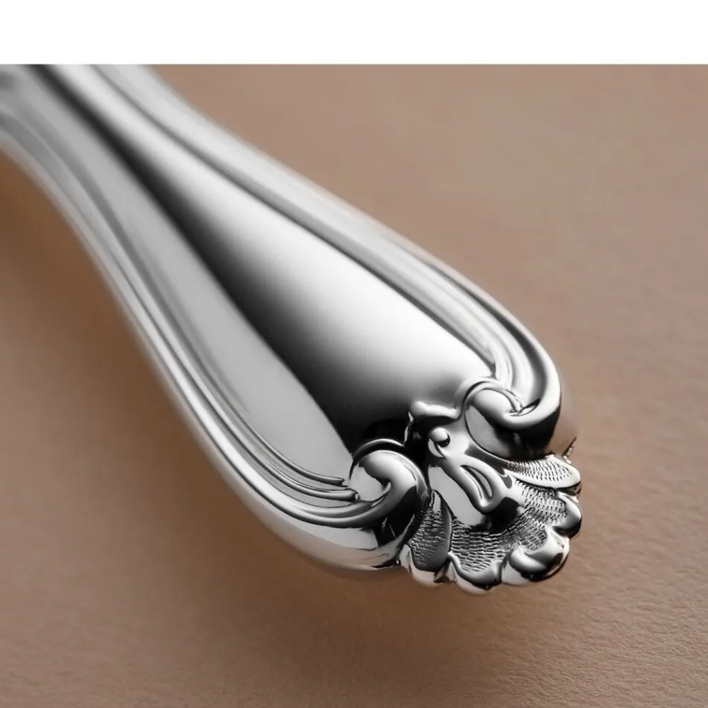 Olga har sin oprindelse i den engelske nyrokoko fra det 19. århundrede. Bestikket er designet til at passe til den tids storstilede borddækninger med krystalglas og smukt foldede servietter. Og det gør sig mindst lige så godt i dag – uanset stil og øvrige omgivelser. Med sine levende bladmønstre er det et design, der tager form og bliver noget, man snakker om rundt om bordet.