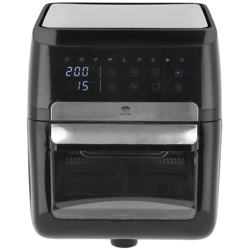 Airfryer-ovn 12 liter. I en airfryer tilberedes maden med cirkulerende varm luft i stedet for fritureolie, og fritterne får sprød og crispy overflade helt uden eller med meget små mængder olie.
