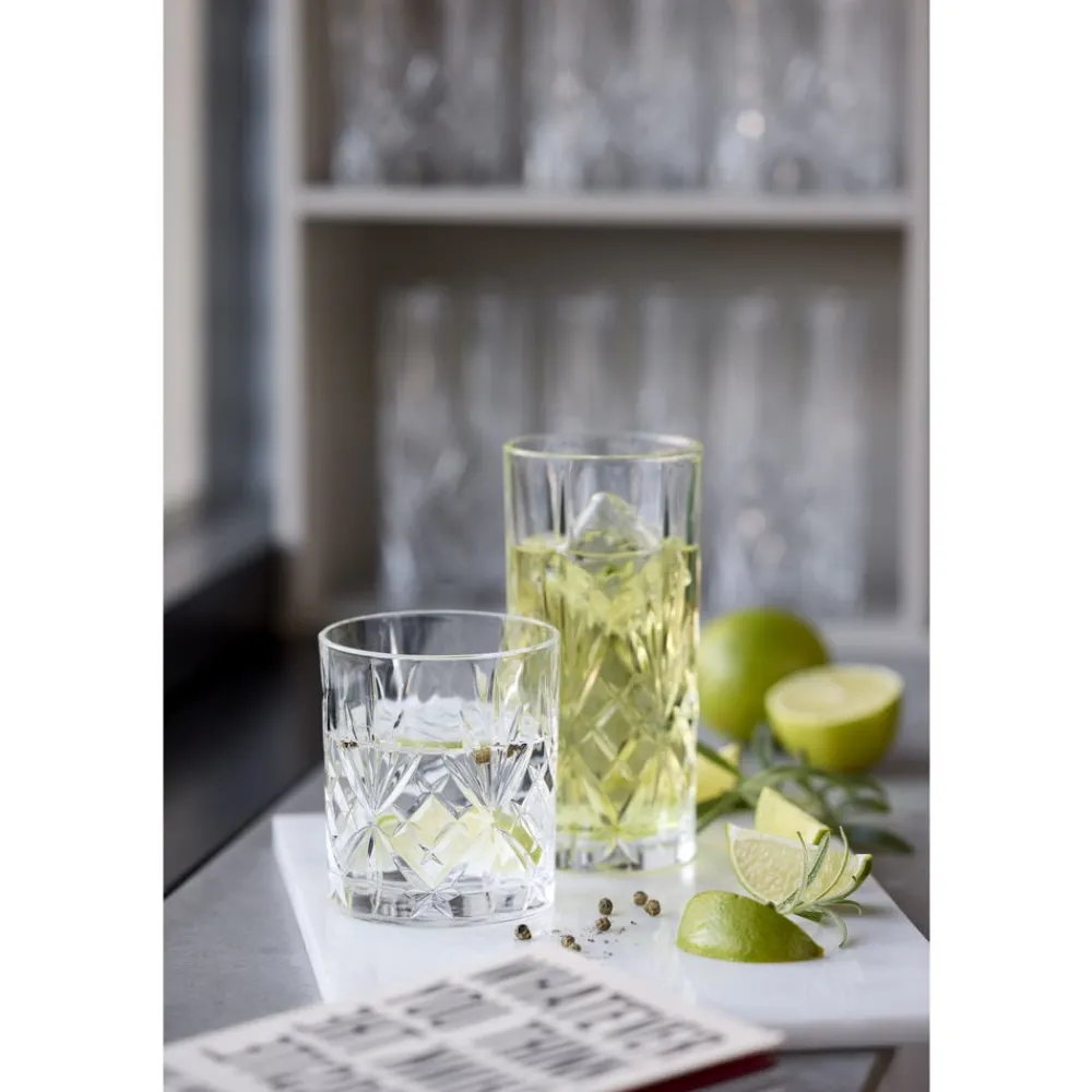 Sættet indeholder 4 stk. Melodia whisky glas, 31 cl, og 4 stk. Melodia highballglas, 36 cl. Denne retromoderne glasserie fremhæver drikkens nuancer, når omgivelsernes lys og skygger reflekteres i krystalglassets smukke mønster.