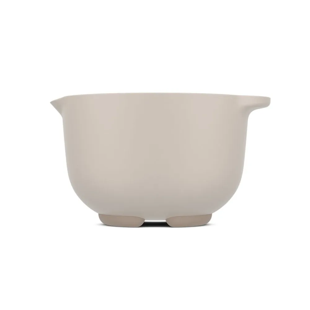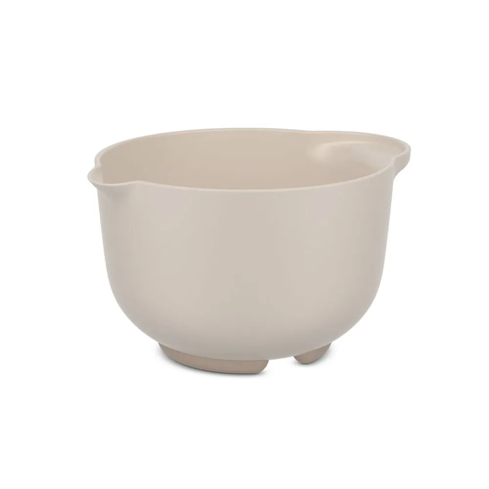 Røreskålen er lavet af pp, et plastmateriale, der tåler mikrobølgeovn og temperaturer op til 110 °C. To smarte åbninger i den skridsikre bundring under røreskålen forhindrer, at der samler sig vand, når du sætter skålen på hovedet i opvaskemaskinen.
