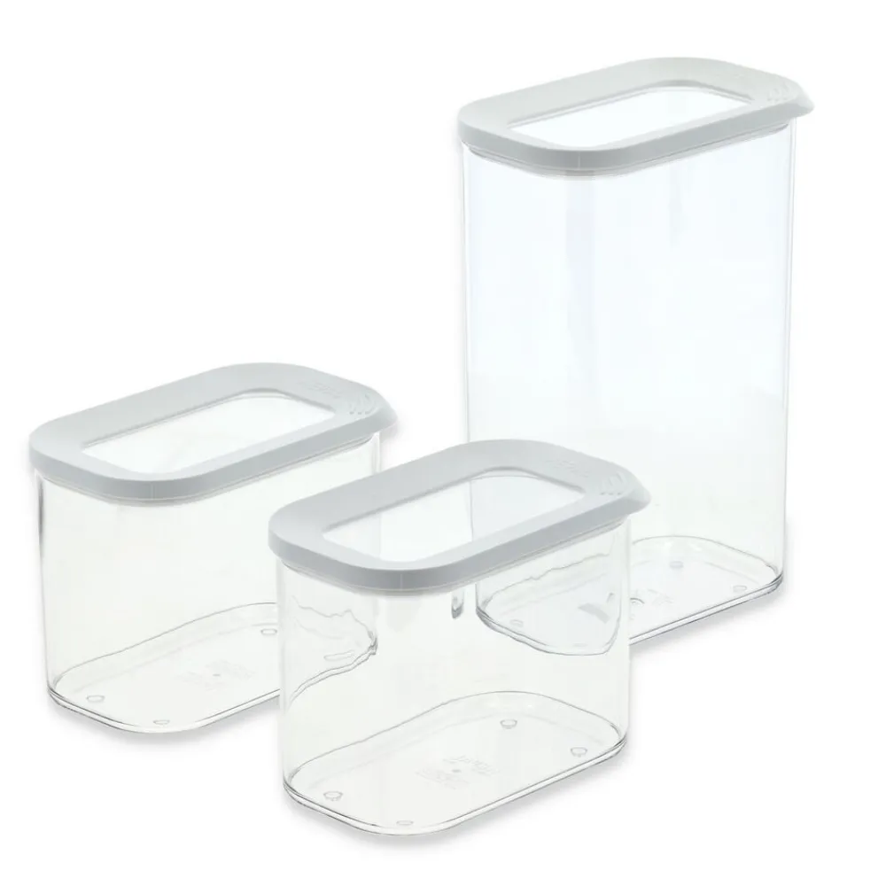 Sæt med 3 stk. Mepal Modula opbevaringsbokse med enkel, hvid kant på låget. Både boks og låg er gennemsigtige, hvilket gør det nemt at overskue indholdet. Indeholder: 2 x 1000 ml, 1 x 2000 ml. Boksen er fremstillet af SAN-plast, som er robust og modstandsdygtig overfor ridser. Velegnet til opvaskemaskine men ikke til mikroovn og fryser.