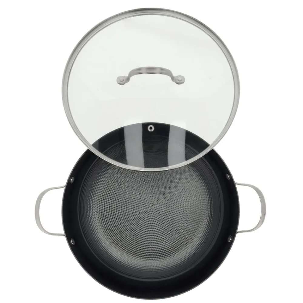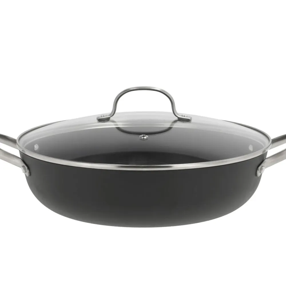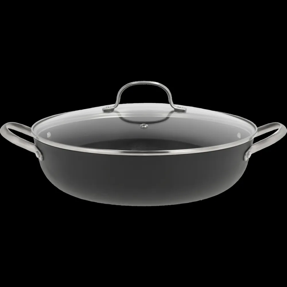 Gryde, 4,7 liter. Garonne-serien fra Pillivuyt Gourmet er til dig, der elsker at stege ved en god, høj temperatur – uanset om det er saftige steaks, simreretter eller en lynstegt wokret. Denne Garonne-gryde er fremstillet af robust letvægtsstøbejern med en keramisk non-stick-belægning og et diskret bikubemønster i bunden. Det forhøjede mønster reducerer kontaktfladen mellem maden og panden, hvilket mindsker risikoen for, at maden brænder fast og gør det nemmere at opnå en flot stegeskorpe.