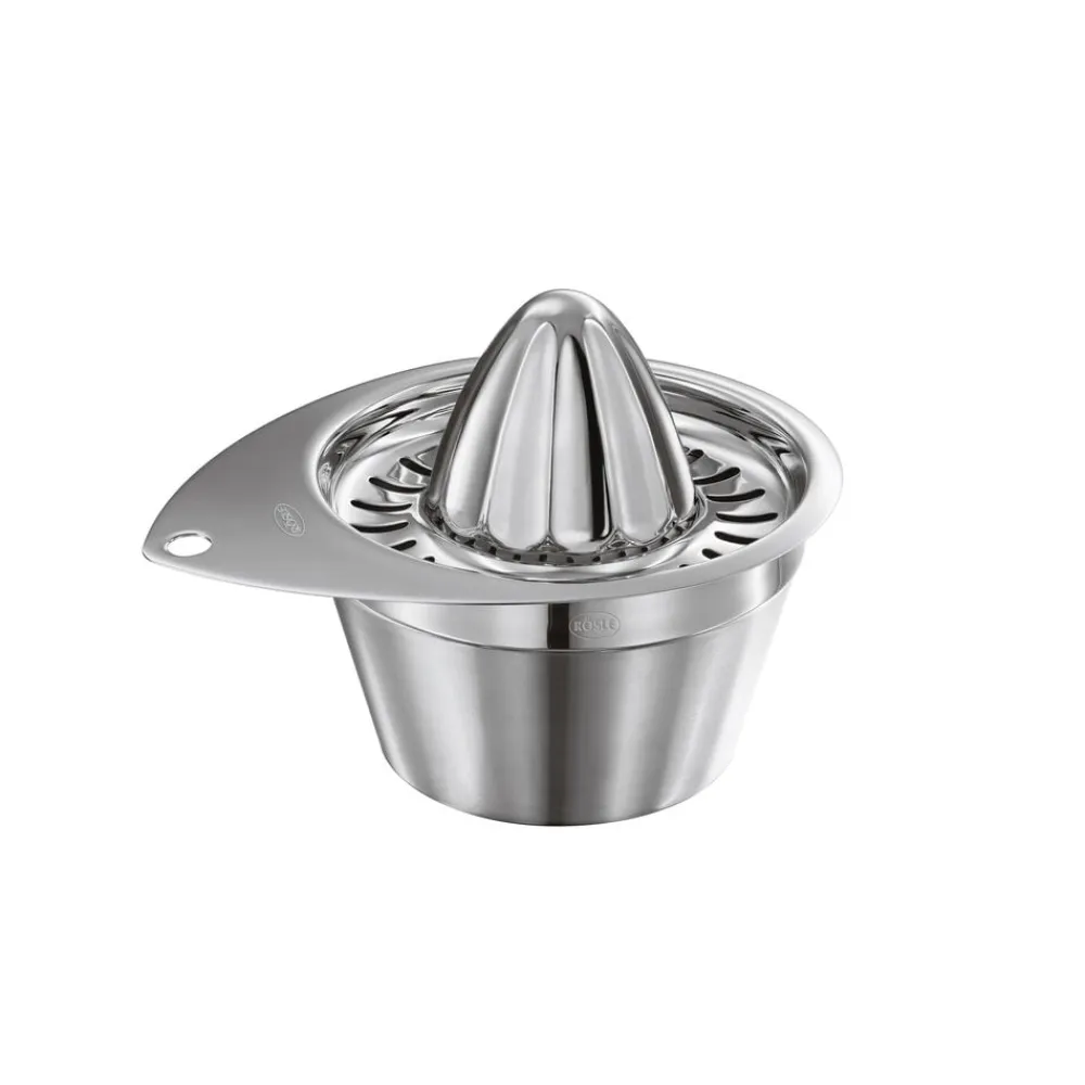 RÖSLE citruspresser er skabt til at få hver en dråbe saft ud af citrusfrugter uden at tilstoppe. Med hældekant. Tåler opvaskemaskine.