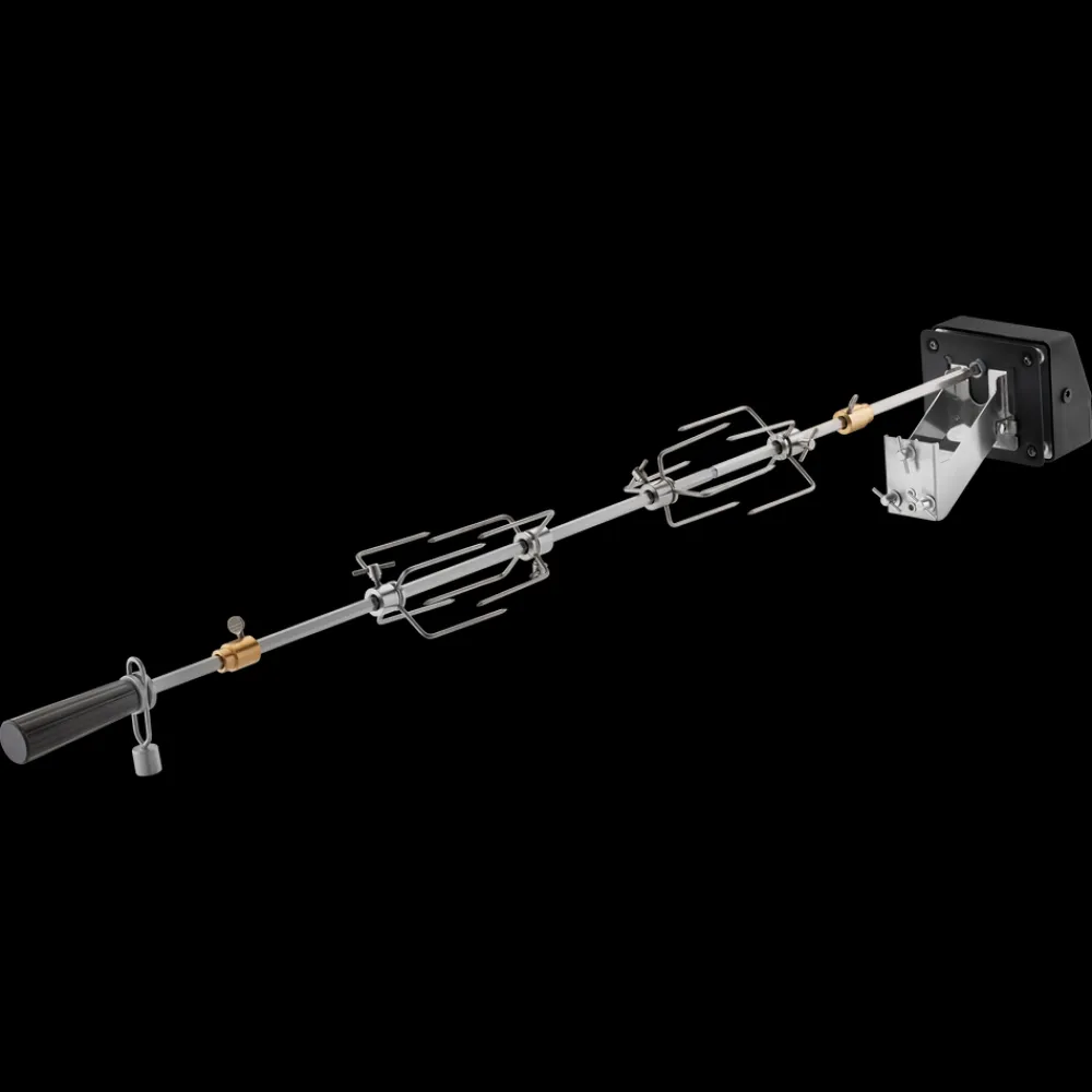 Sekskantet spyd af massivt rustfrit stål kan holde en vægt på op til 10 kg. 4 robuste holdere til at fæstne kødet. Inkl. elmotor med strøm eller batteridrift. Batterier medfølger ikke. Strømforsyning 230V / 50 Hz til elmotor inkluderet. Velegnet til følgende modeller: MAGNUM G4, VIDERO G4 / G6 modeller.