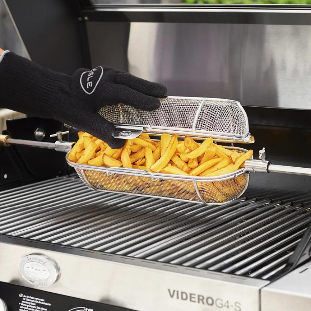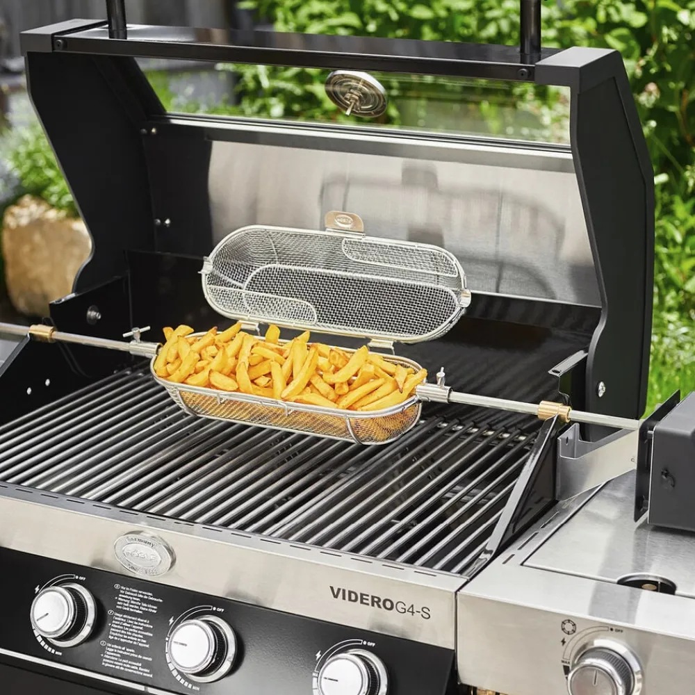 Rotisserie til tilberedning af kylling, spidsteg, gyros osv. Rotationshastigheden på ca. 3 omdrejninger pr. minut fordeler safterne jævnt og efterlader kødet sprødt udvendigt og saftigt indeni.