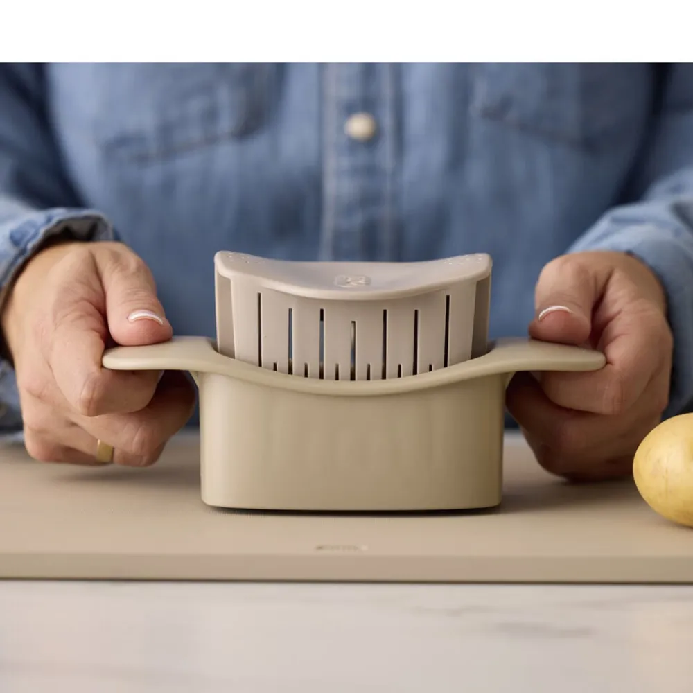 Hasselback-skæreren fra Rosti er et hurtigt og effektivt redskab til at skære skarpe og regelmæssige riller i kartofler og andre rodfrugter. Uanset om du forbereder klassiske Hasselbackkartofler eller eksperimenterer med grøntsager som pastinak eller tomat, opnår du nemt hurtige og imponerende resultater.