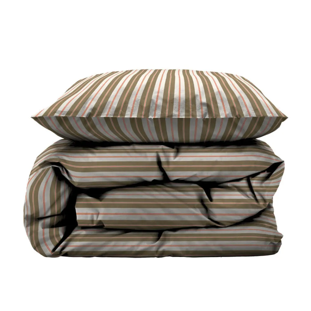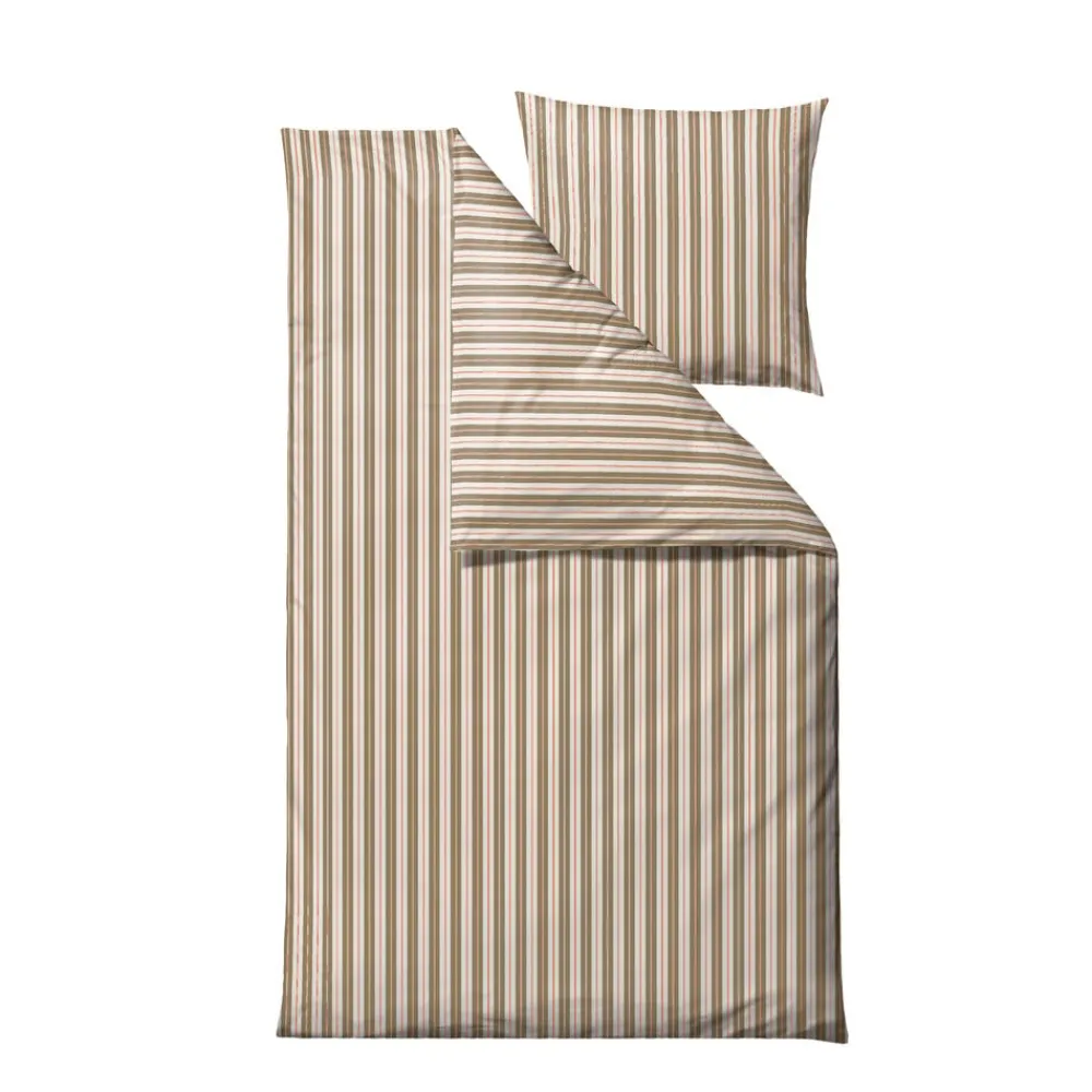 Flow tilfører soveværelset elegance og rytme med sit fine grafiske stribemønster. Både layout og farvekombinationer er identiske på for- og bagside af sengesættet, hvilket giver et harmonisk og afbalanceret udtryk. Fremstillet i 100 % bomuld i en åndbar lærredsvævning.