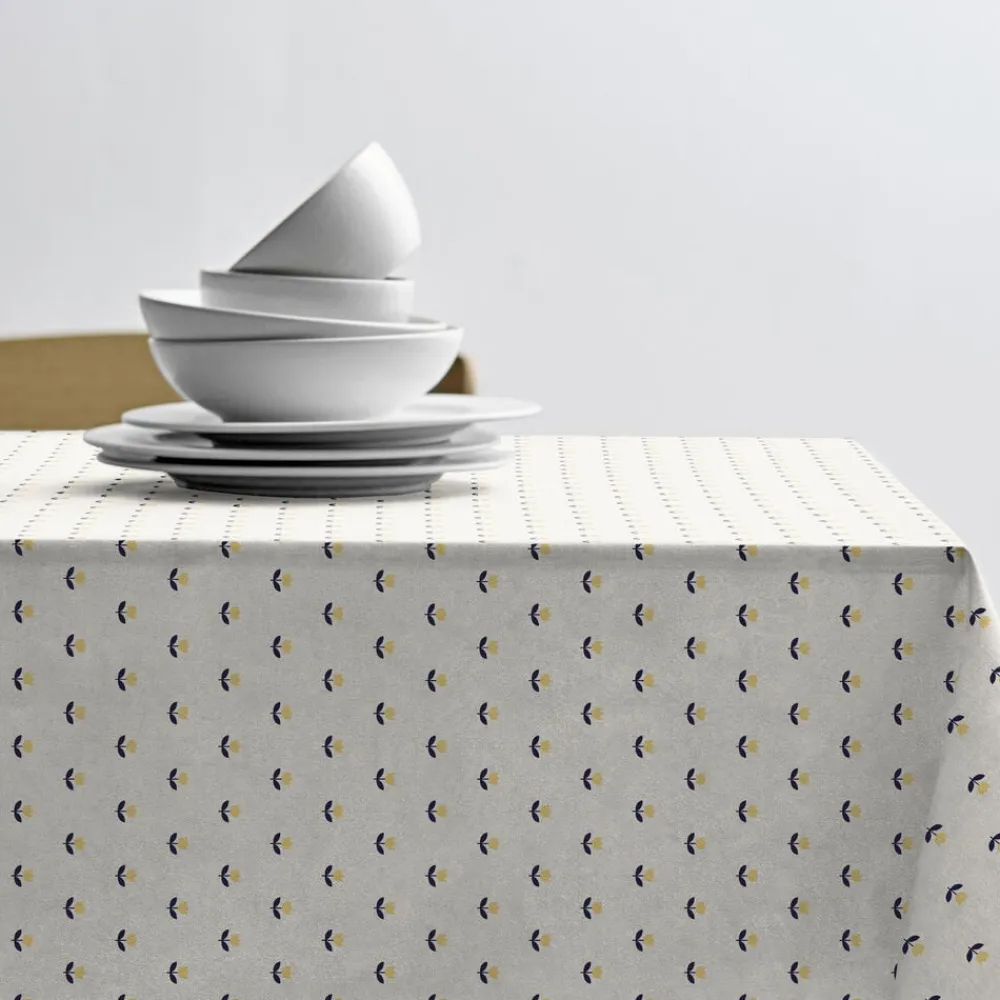 Med et charmerende print af små tulipaner i et tæt mønster tilføjer denne dug en herlig vintage-stemning og forfriskende coolness til din spisestue.
