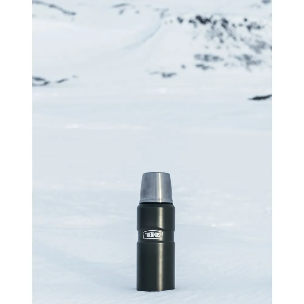 Thermos Stainless King 470 ml termoflaske i rustfrit stål. Låget kan bruges som kop, og flasken er velegnet til både kolde og varme drikke. Holder indholdet varmt i op til 12 timer og koldt i op til 24 timer.