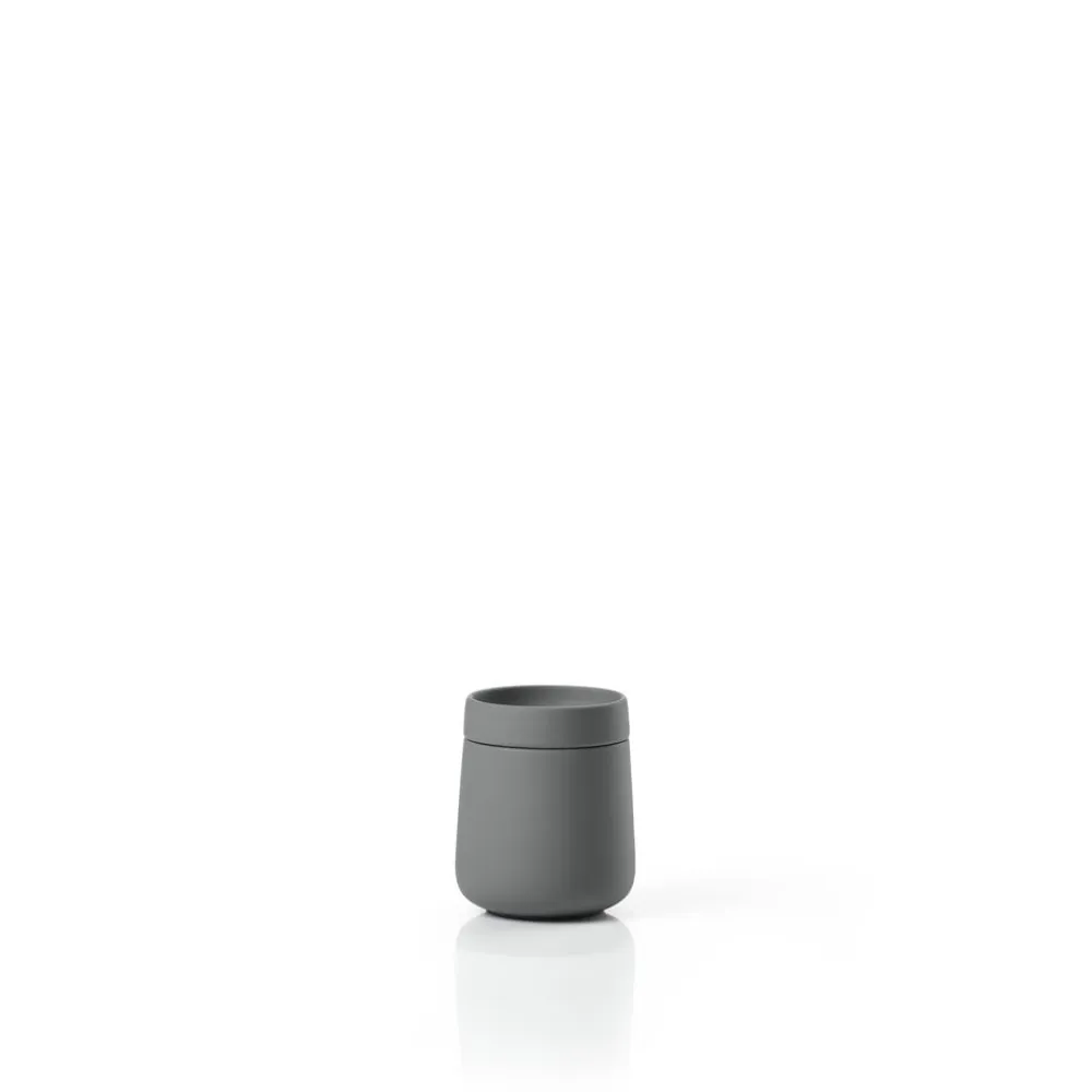 Den lille stentøjskrukke med låg er lige så fin, som den er anvendelig. Fyld den med alt det, der endnu ikke har fået en fast plads på badeværelset. Vatrondeller, hårpynt eller kontaktlinser måske? Låget har en fin fordybning, og det er derfor som skabt til at lægge smykkerne på, inden du lægger dig på puden.