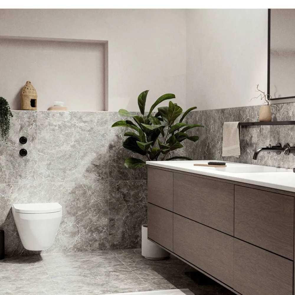 Med Rim kan du indrette badet komplet med alt fra hylder til skraber og sæbedispenser.