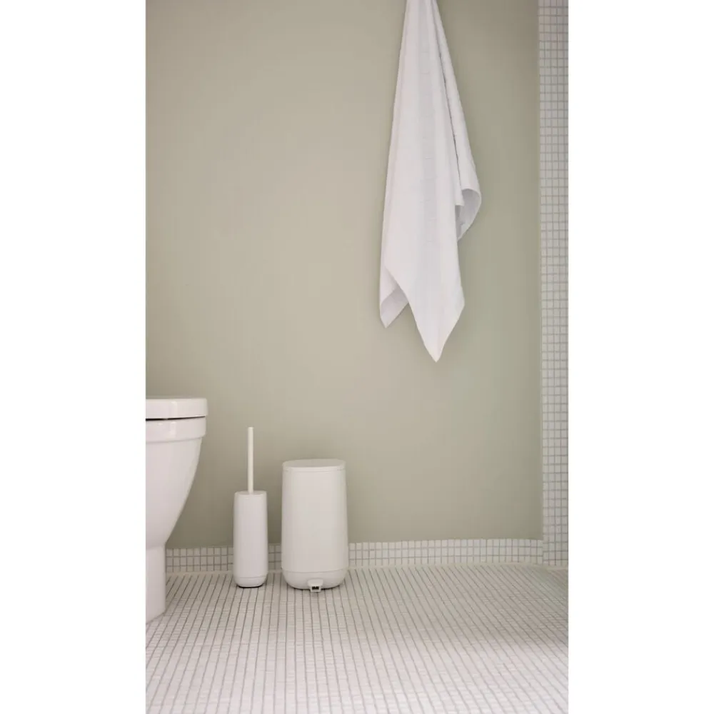 TIME badserien får dig til at kigge en ekstra gang. Tre af seriens fire produkter – nemlig sæbedispenser, tandbørstekrus og toiletbørste – er udført i beton og blot suppleret med få plast-detaljer. Pedalspanden er derimod ren ABS-plast, men matcher beton-produkterne farvemæssigt, så serien fremstår som én stærk helhed. Beton er kendt for sin kompromisløse karisma og naturlighed og har de senere år vundet indpas i boligindretningen. Det er på én gang hårdt, blødt og meget smukt. Endelig er det et lidt mere energibesparende materiale end fx keramik, da det ikke skal brændes ved høj temperatur.
