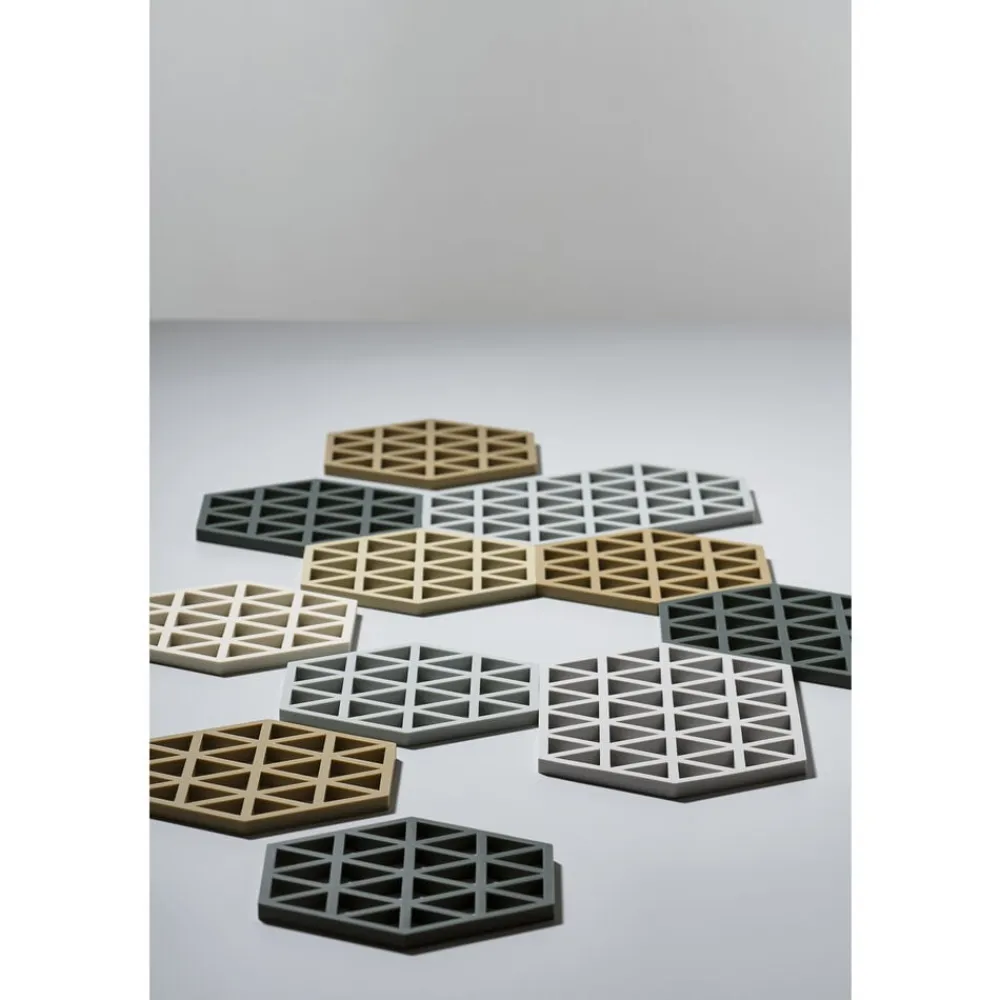 Serien er skabt af designertrioen VE2. Triangles fås i mange spændende farver og er flotte at mikse med Hexagon bordskånerne, der har samme ydre dimensioner.