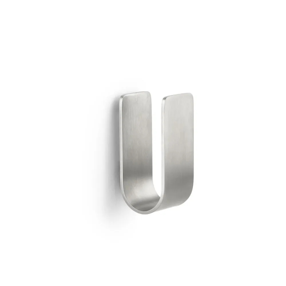 De små vægkroge kan sikkert, men diskret, bære alt fra håndklæderne til badebørsten. De runde hjørner giver krogene et venligt udtryk, og takket være skjulte beslag har de en klædelig lethed på væggen. De er lette at montere, ja faktisk er det sværeste nok at vælge farve. De små skønheder i pulverlakeret aluminium fås nemlig i hele 9 forskellige nuancer samt rustfrit mat stål.