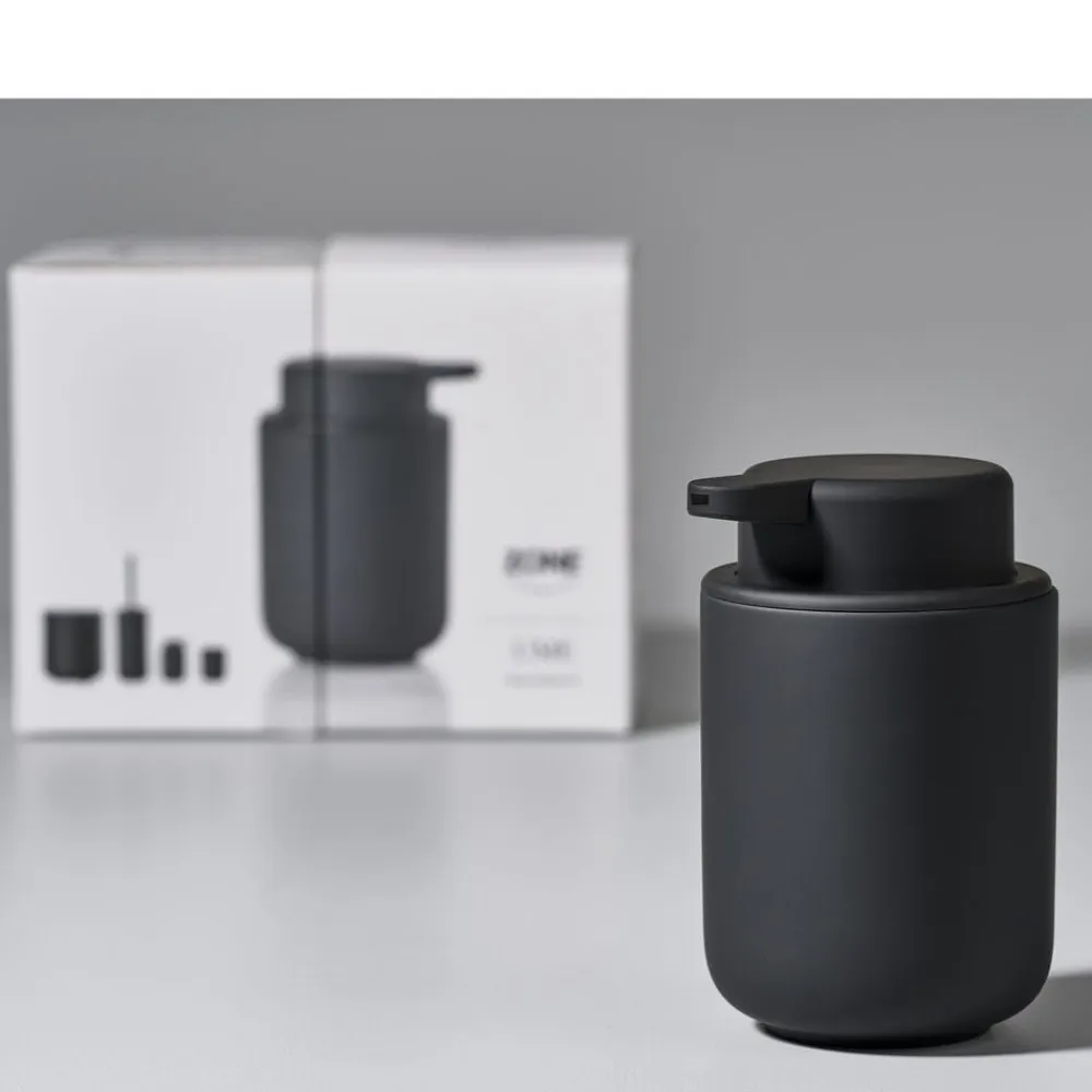 Sæbedispenseren fra badserien Ume er udformet med en praktisk tud. Den er et blødt, blidt og behageligt bekendtskab, og det er designertrioen VE2, som står bag udformningen af de velproportionerede elementer i serien. Højde 12,8 cm. 0,25 l.