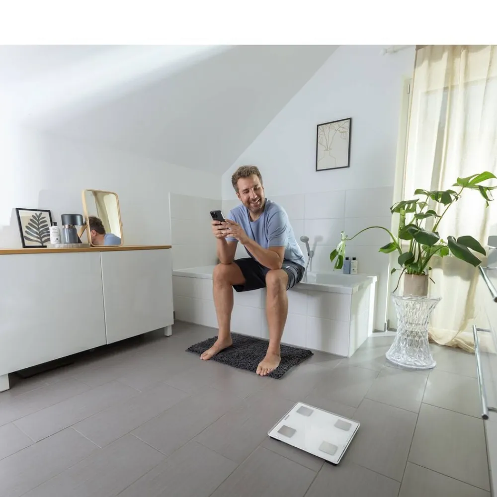 Shape Sense Connect Lite måler ikke kun vægt, men også fedtprocent, vandindhold, muskelmasse, BMI og kaloriebehov ved hjælp af bioelektrisk impedansanalyse (BIA). Alle data kan overføres direkte via Bluetooth til Soehnle MyScale-appen, så du nemt kan følge din udvikling. Kropsanalysevægten har et stilrent design med LED-display, der kun tændes, når du træder op på den, og forbliver usynligt i hviletilstand. Den kan bruges både med og uden appen og genkender automatisk op til 8 forskellige brugere. Med en maksimal kapacitet på 180 kg og mulighed for at vælge mellem kilogram (kg) og pund (lb) passer den til de fleste behov.