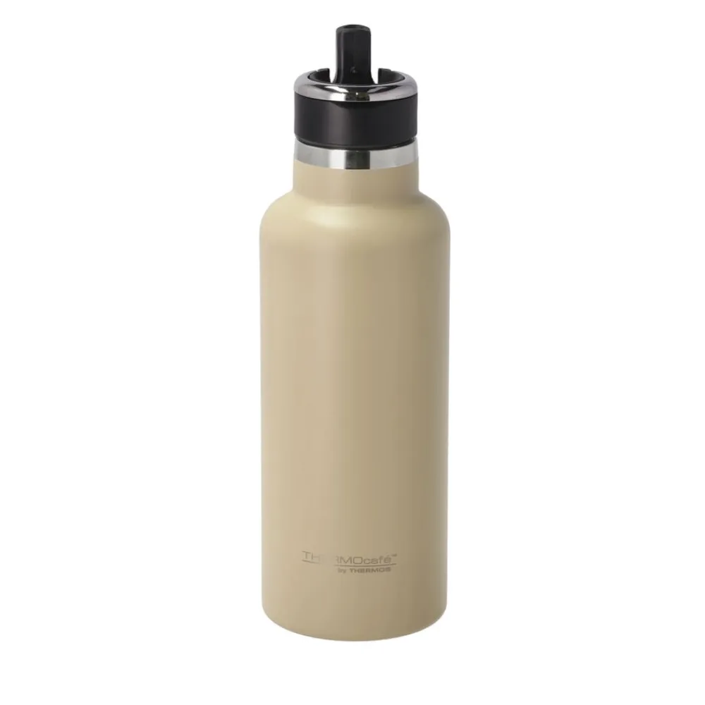 Thermos Hydration 600 ml termoflaske holder dig hydreret, når du er på farten. Fremstillet af rustfrit stål og med vakuumisolering, som holder dine drikkevarer kølige – perfekt til både travle dage og udflugter. Termoflasken holder helt tæt, så du kan trygt tage den med dig uden bekymring. Låget har et praktisk håndtag og et sugerør, der nemt kan vippes op og ned.
