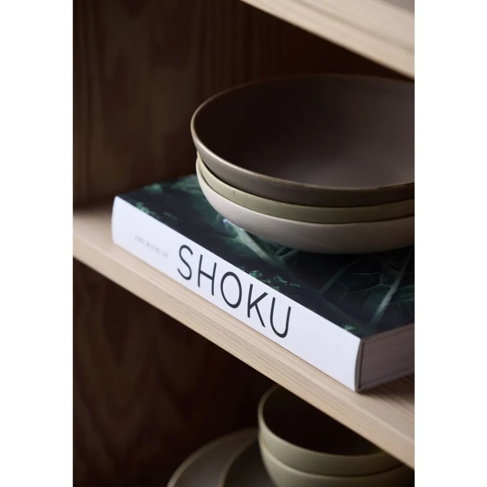 Shoku-stellet forener japansk minimalisme med skandinavisk enkelhed. Med sine organiske former og dæmpede farver skaber Shoku en harmonisk og rolig atmosfære omkring bordet. Stellets dele er designet med rene linjer og silkeblød, mat og blank glasur, der understreger en naturlig æstetik og løfter måltidets visuelle og kulinariske oplevelse. Shoku betyder mad eller spise på japansk og symboliserer glæden ved både maden og samværet omkring bordet. Med sine holdbare materialer og tidløse design er Shoku-stellet det ideelle valg til både daglig brug og særlige anledninger, hvor skønhed og funktionalitet mødes.